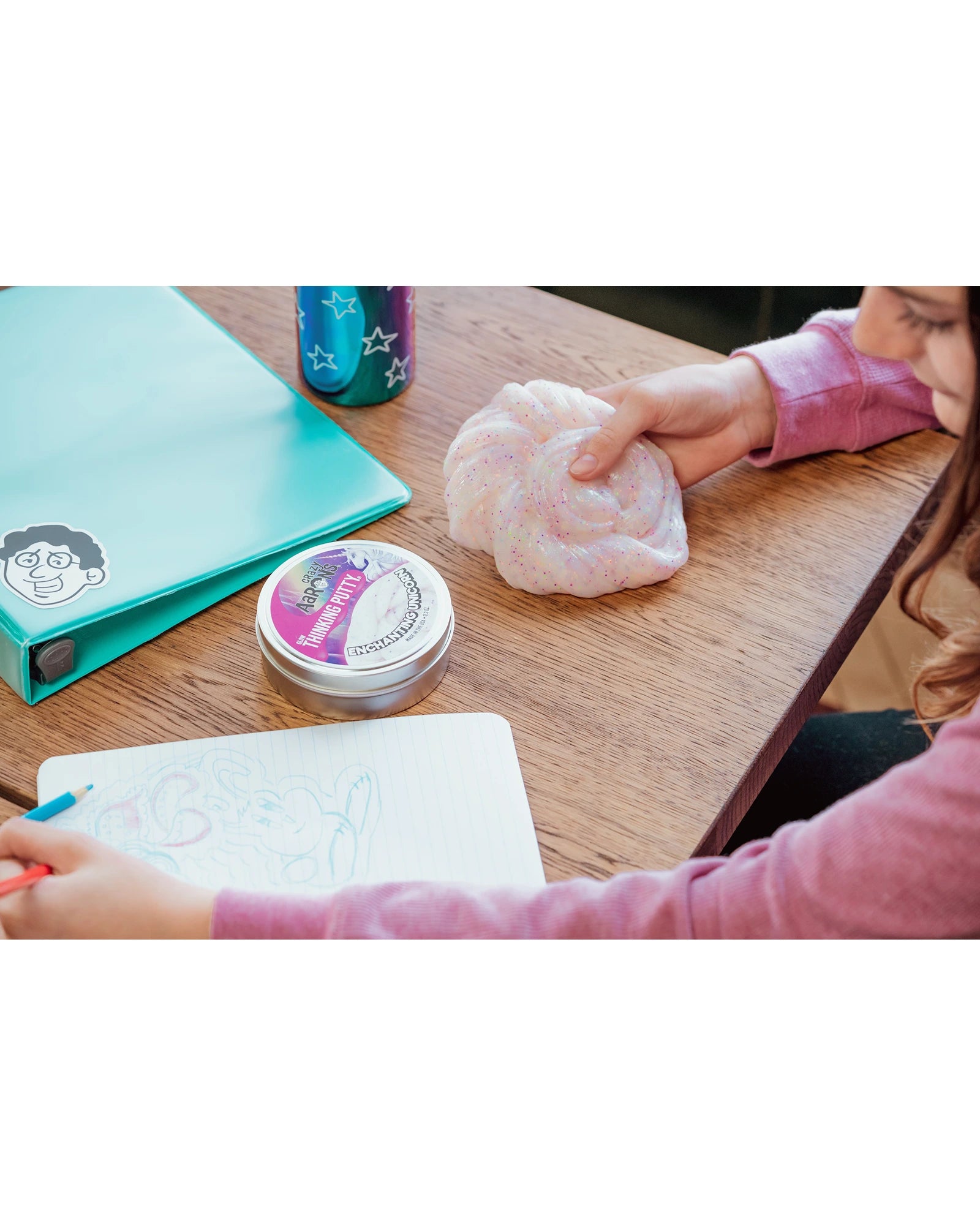 A mythical symbol of beauty and strength, the unicorn has fascinated people throughout the ages. Believe in magic with Enchanting Unicorn Thinking Putty®. It charms with a rainbow of neon confetti, shines with golden glitter, and glows a pretty pink in the dark.
