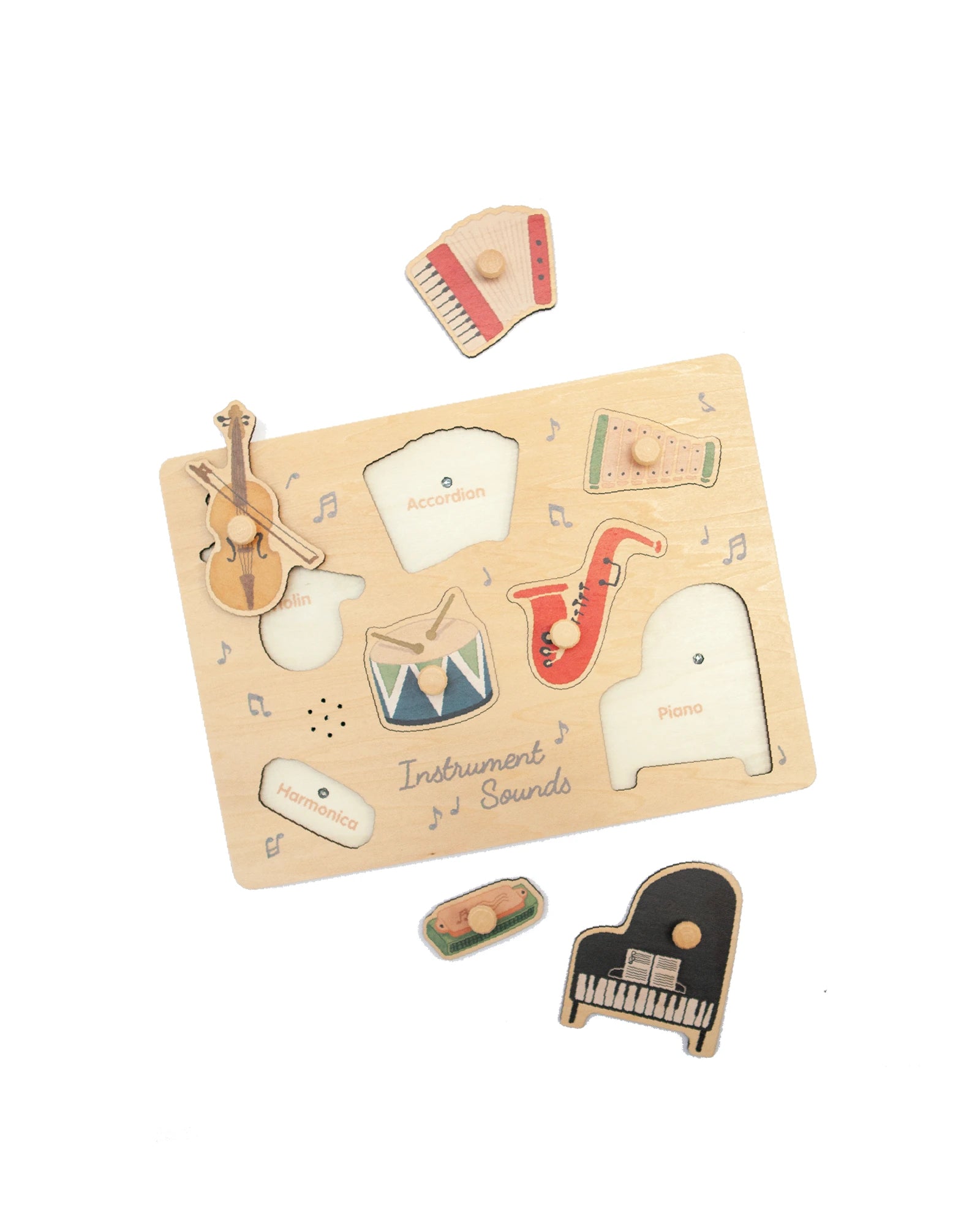 Strike up the band and introduce your child to the joy of music with the Bello Instruments Sound Puzzle! This interactive wooden puzzle helps little learners discover different musical instruments and their unique sounds while building important developmental skills.