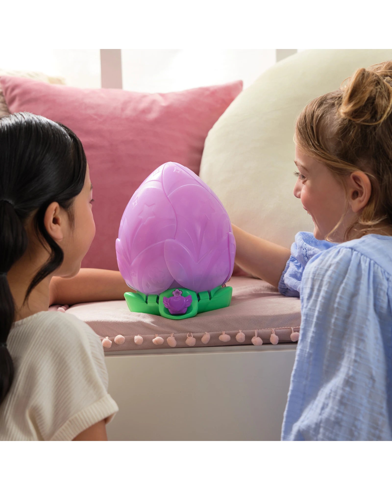Exciting transformations: Shower the flower with love until the petals open, revealing an adorable Hatchipillar. When her antennae glow rainbow, set her in the flower, enjoy lights & music & watch the flower bloom to reveal Puppyfly.