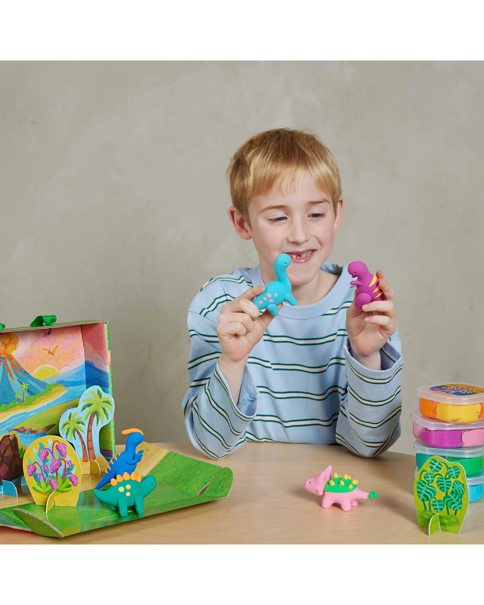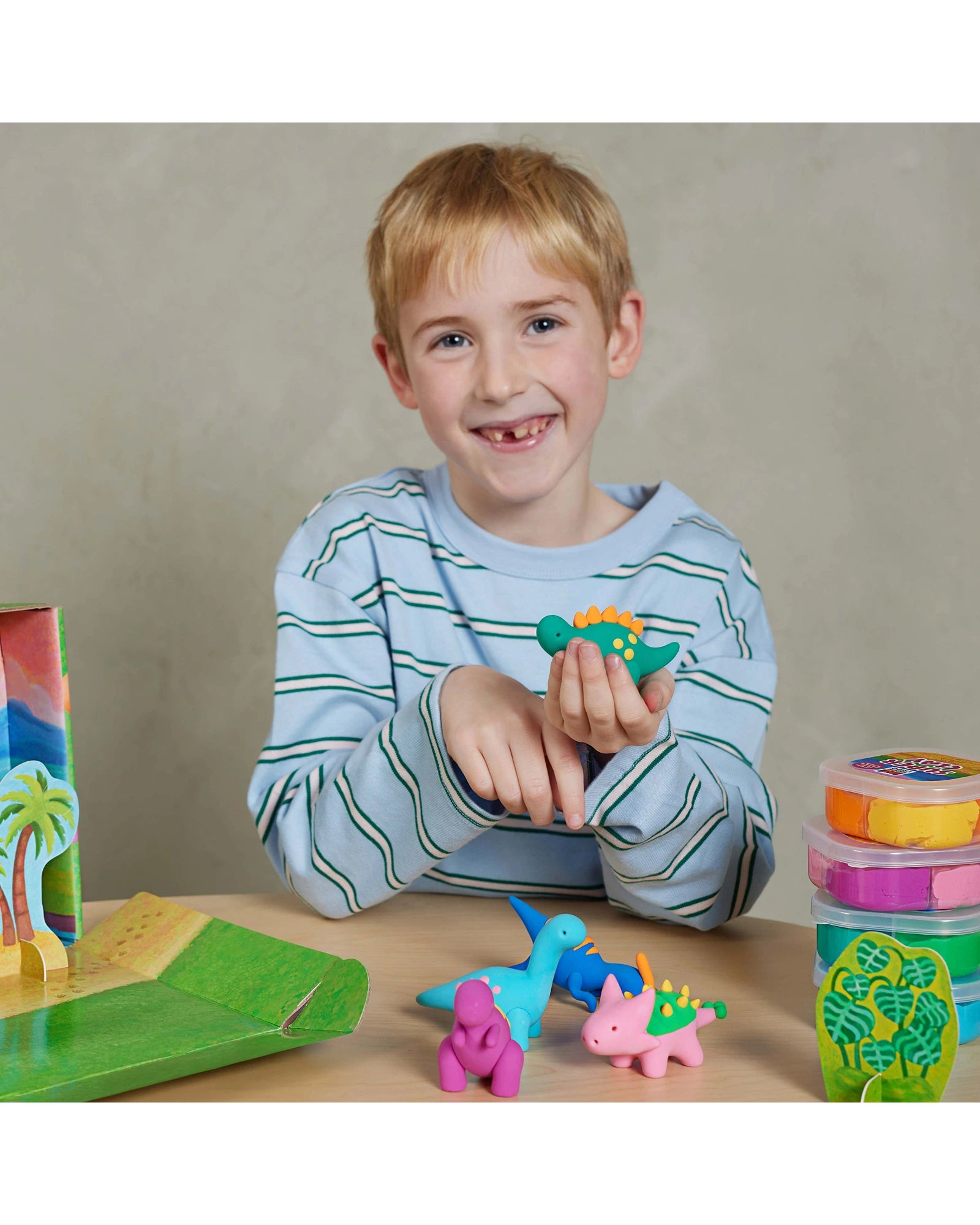 Tiger Tribe’s Claytopia – Dinosaurs includes everything needed to make six colourful, air-drying clay dinosaurs, plus a pop-out play scene to spark imaginative storytelling. It’s a hands-on craft kit that encourages sensory exploration and builds fine motor skills through open-ended play. Includes: 8 colours (160g) of air-drying clay to make 6 dinos, 1 sculpting tool, 2 pop-out accessory sheets, built-in play scene, visual instructions