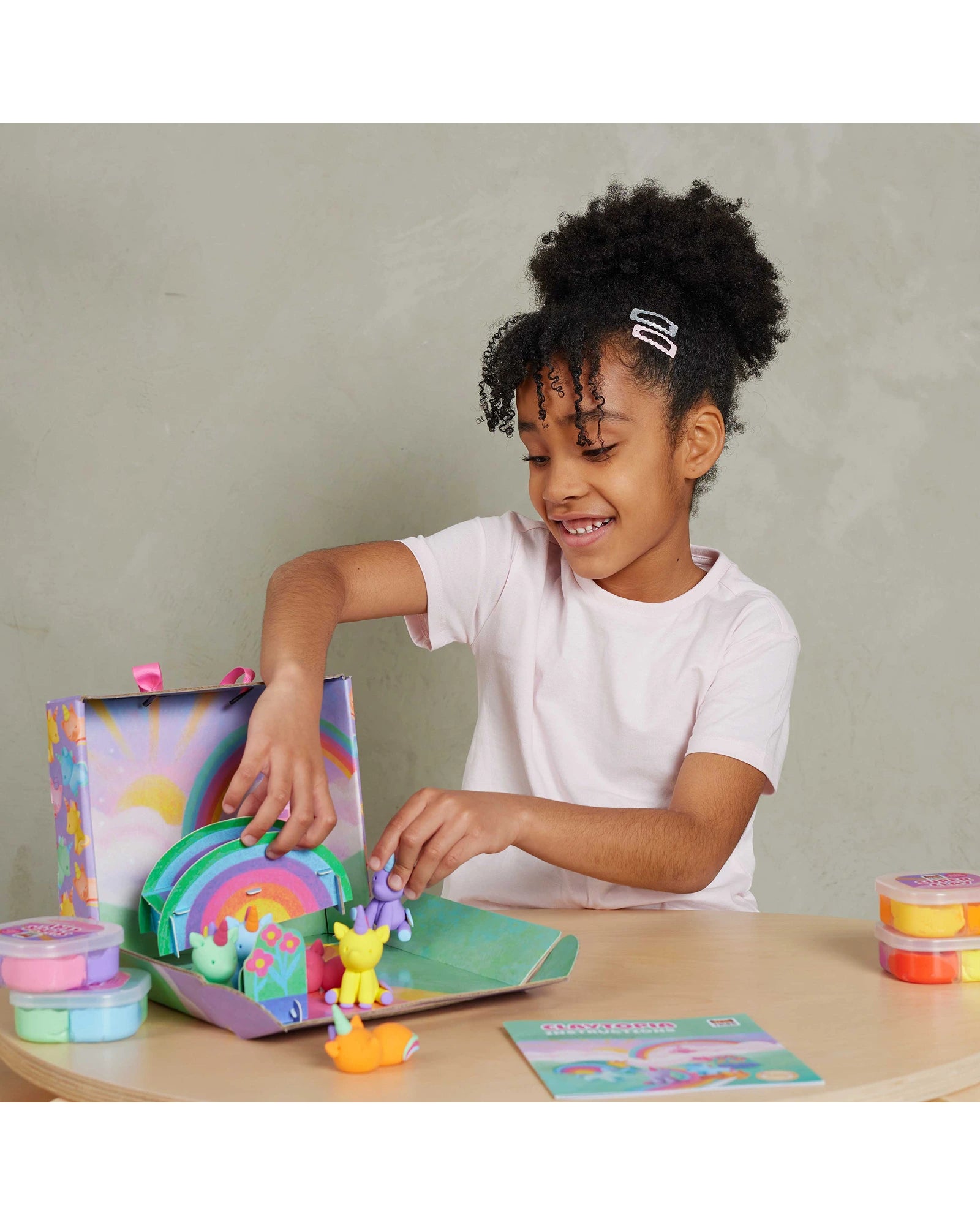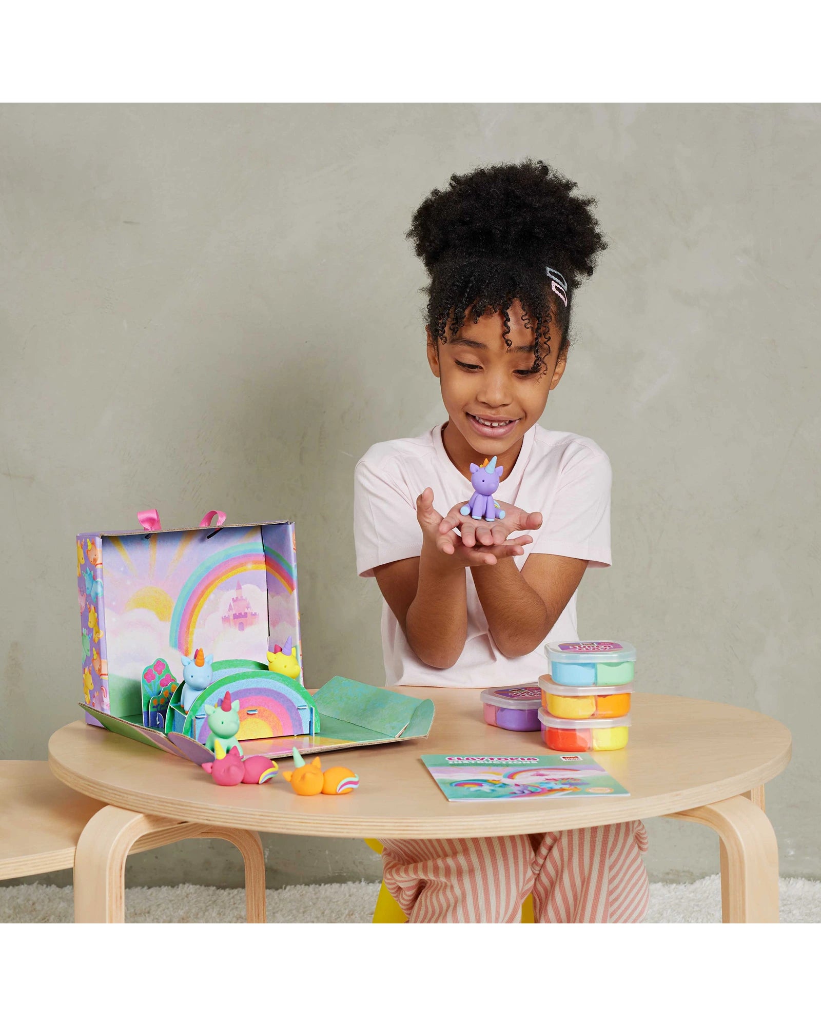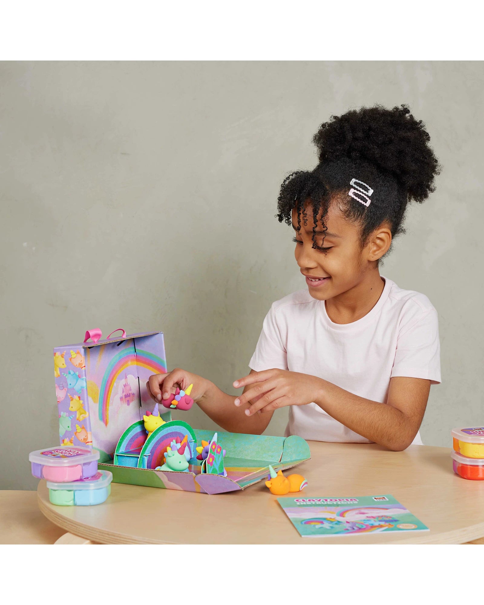 Tiger Tribe’s Claytopia – Unicorns includes everything needed to make six colourful, air-drying clay unicorns, plus a pop-out play scene to spark imaginative storytelling. It’s a hands-on craft kit that encourages sensory exploration and builds fine motor skills through open-ended play. Includes: 8 colours (160g) of air-drying clay to make 6 unicorns, 1 sculpting tool, 2 pop-out accessory sheets, built-in play scene, visual instructions