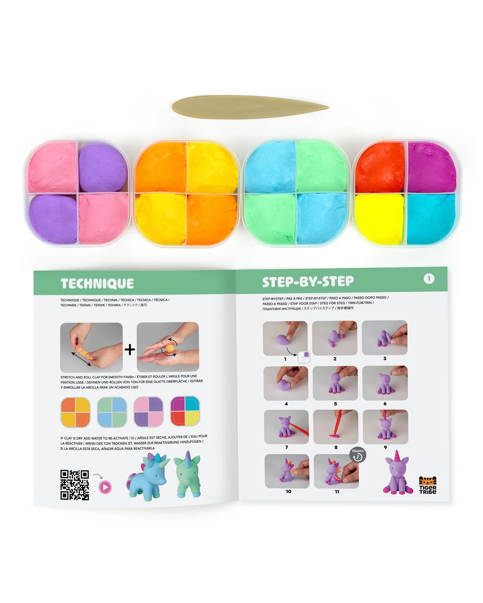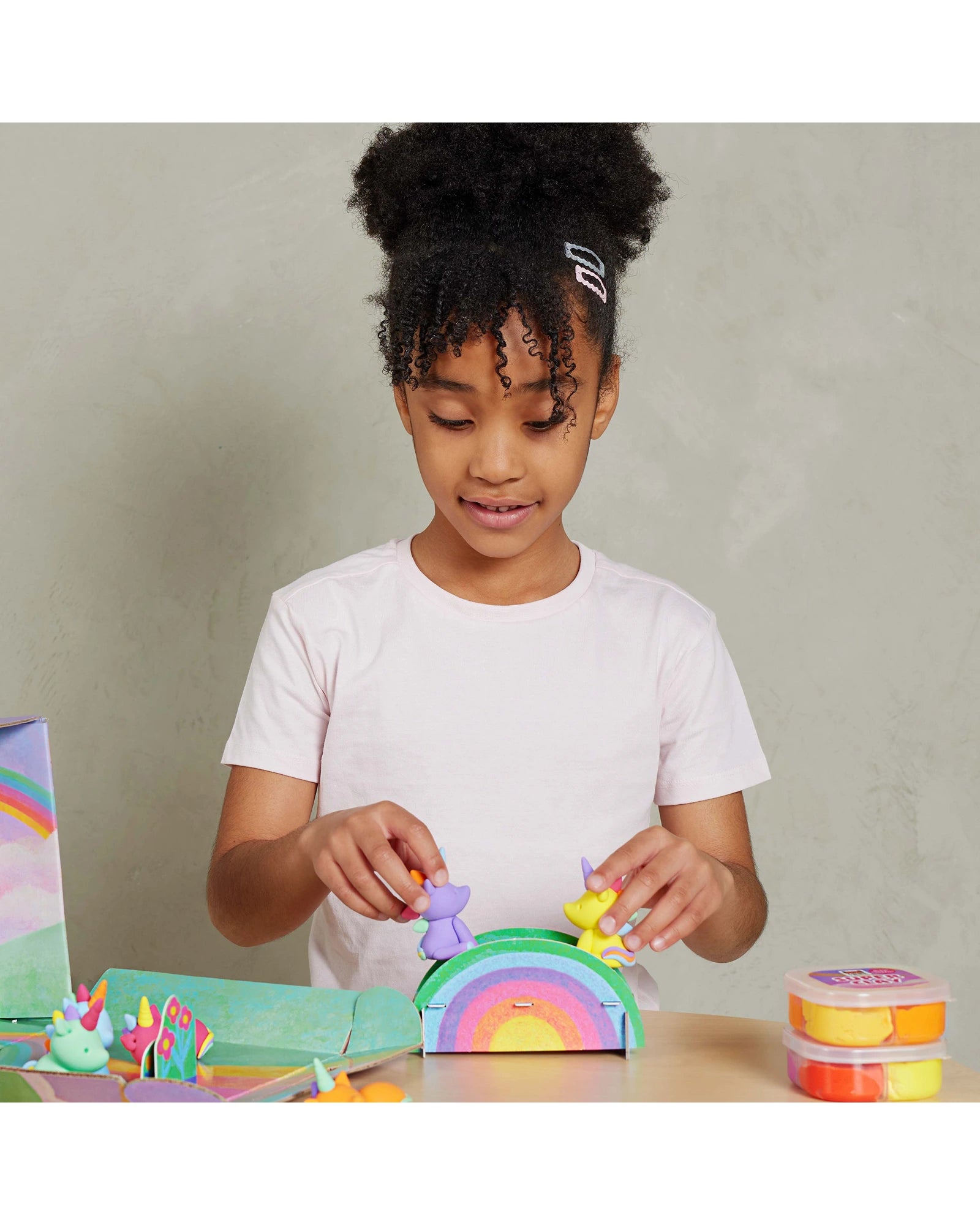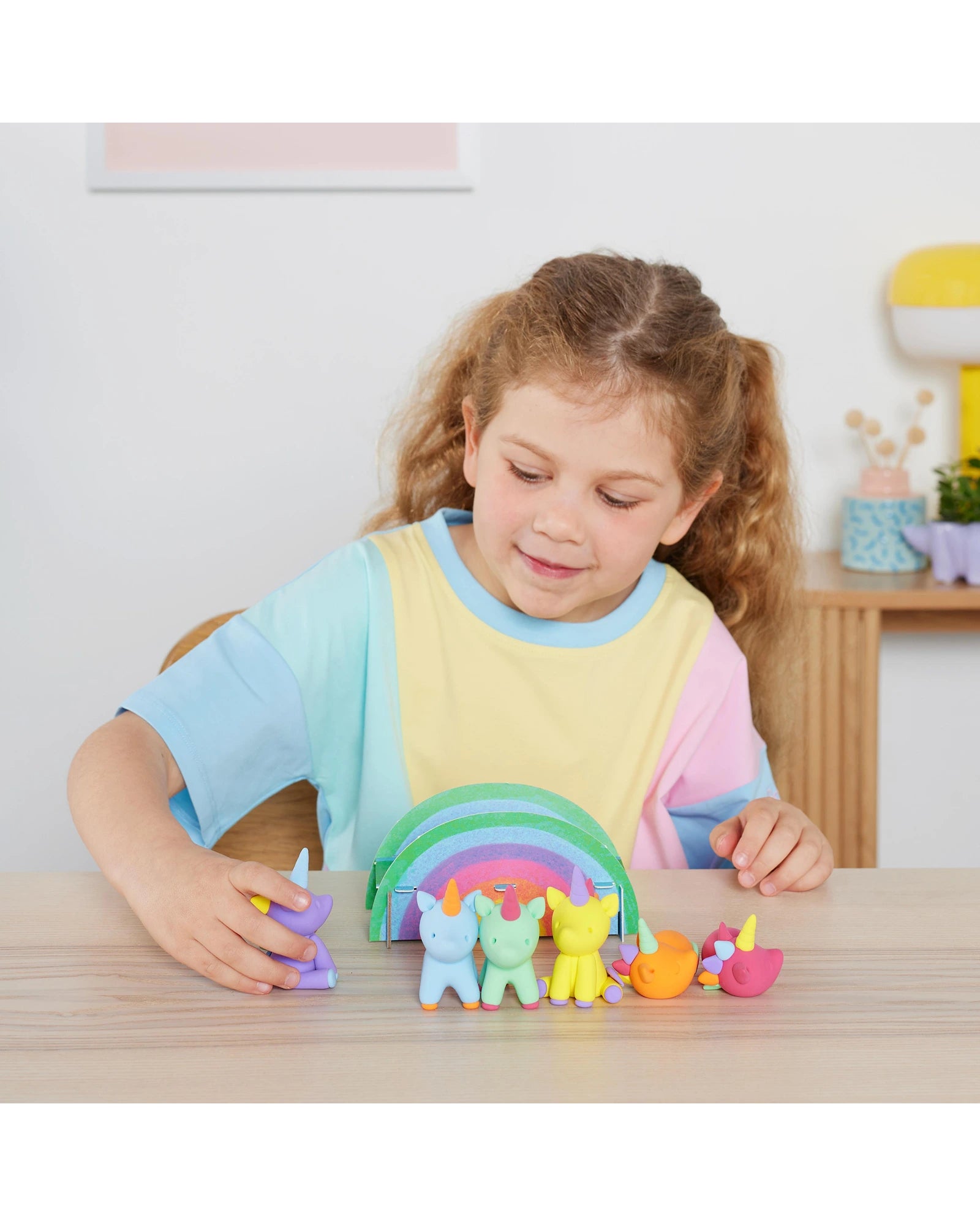 Tiger Tribe’s Claytopia – Unicorns includes everything needed to make six colourful, air-drying clay unicorns, plus a pop-out play scene to spark imaginative storytelling. It’s a hands-on craft kit that encourages sensory exploration and builds fine motor skills through open-ended play. Includes: 8 colours (160g) of air-drying clay to make 6 unicorns, 1 sculpting tool, 2 pop-out accessory sheets, built-in play scene, visual instructions