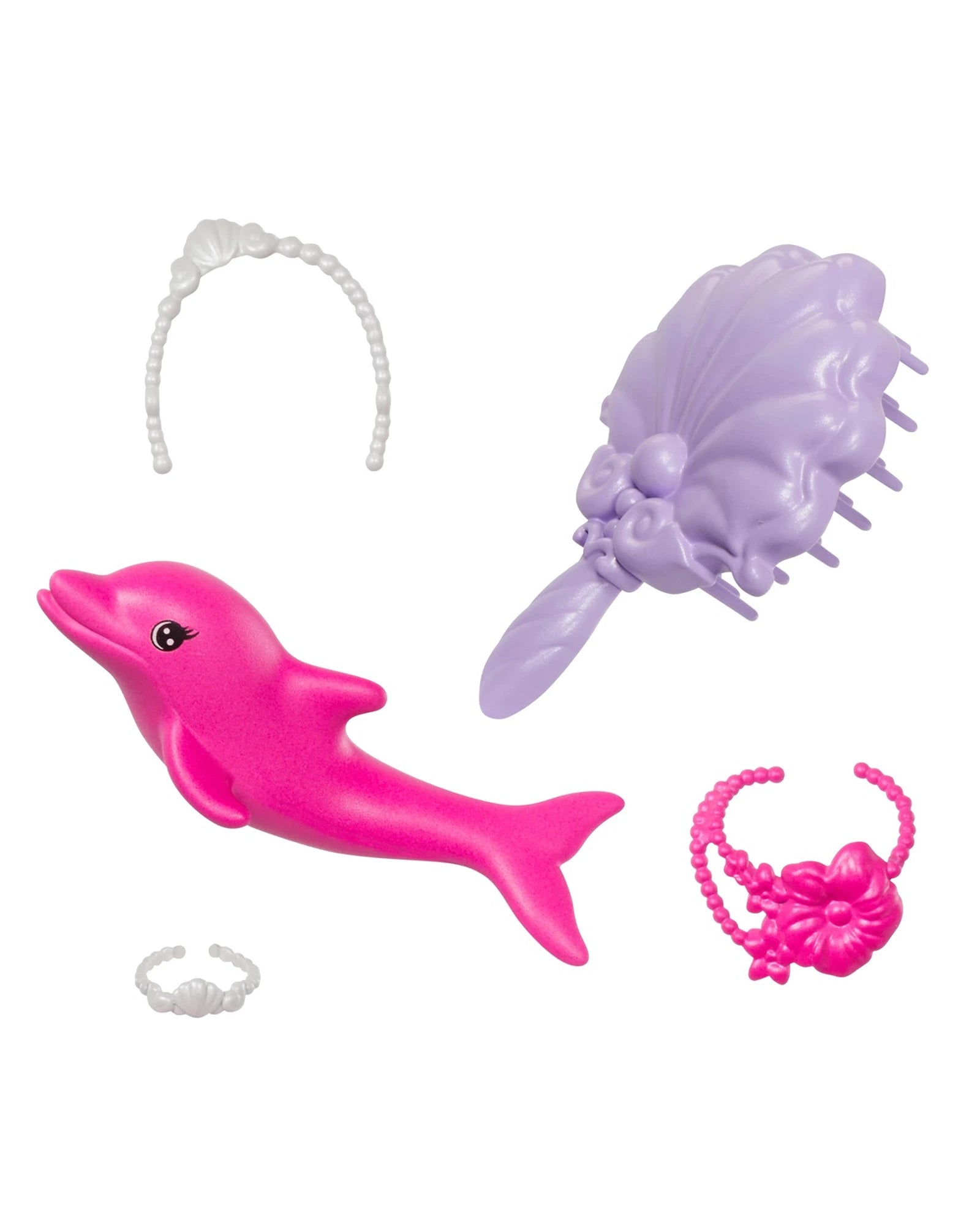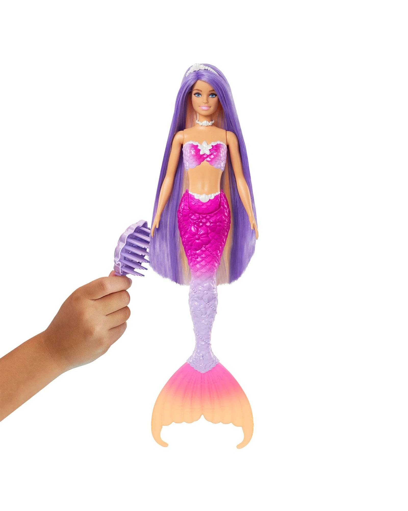These mermaid Barbie dolls transform playtime into pure magic with color change features! As if enchanted by undersea powers, the mermaids' super long hair, sculpted bodices, and ombre tails turn from bubblegum pink to vibrant purple and back again. Each Barbie doll comes with styling accessories, a brush, and an adorable pet, making them a fantastical gift for kids ages 3 years old and up! Each sold separately, subject to availability. Doll cannot swim or stand alone. Colors and decorations may vary.