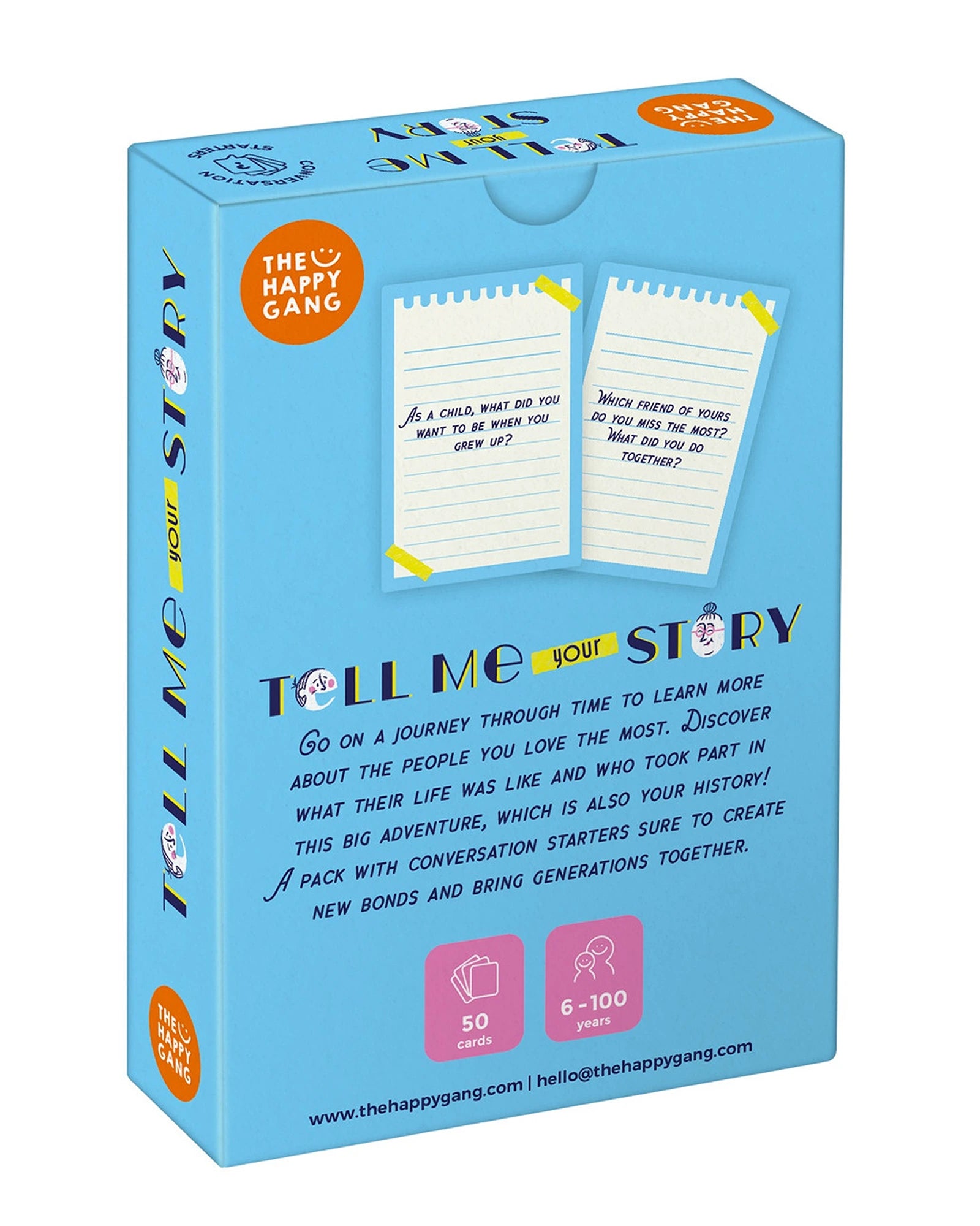 "Tell Me Your Story" by The Happy Gang, a card game with 50 questions to explore the memories of your grandparents. Discover fascinating stories and create intergenerational bonds as you learn more about your family's past. Perfect for children aged 6 and over, this game was illustrated by Bavaroise and belongs to our Range of "Conversation Starter".