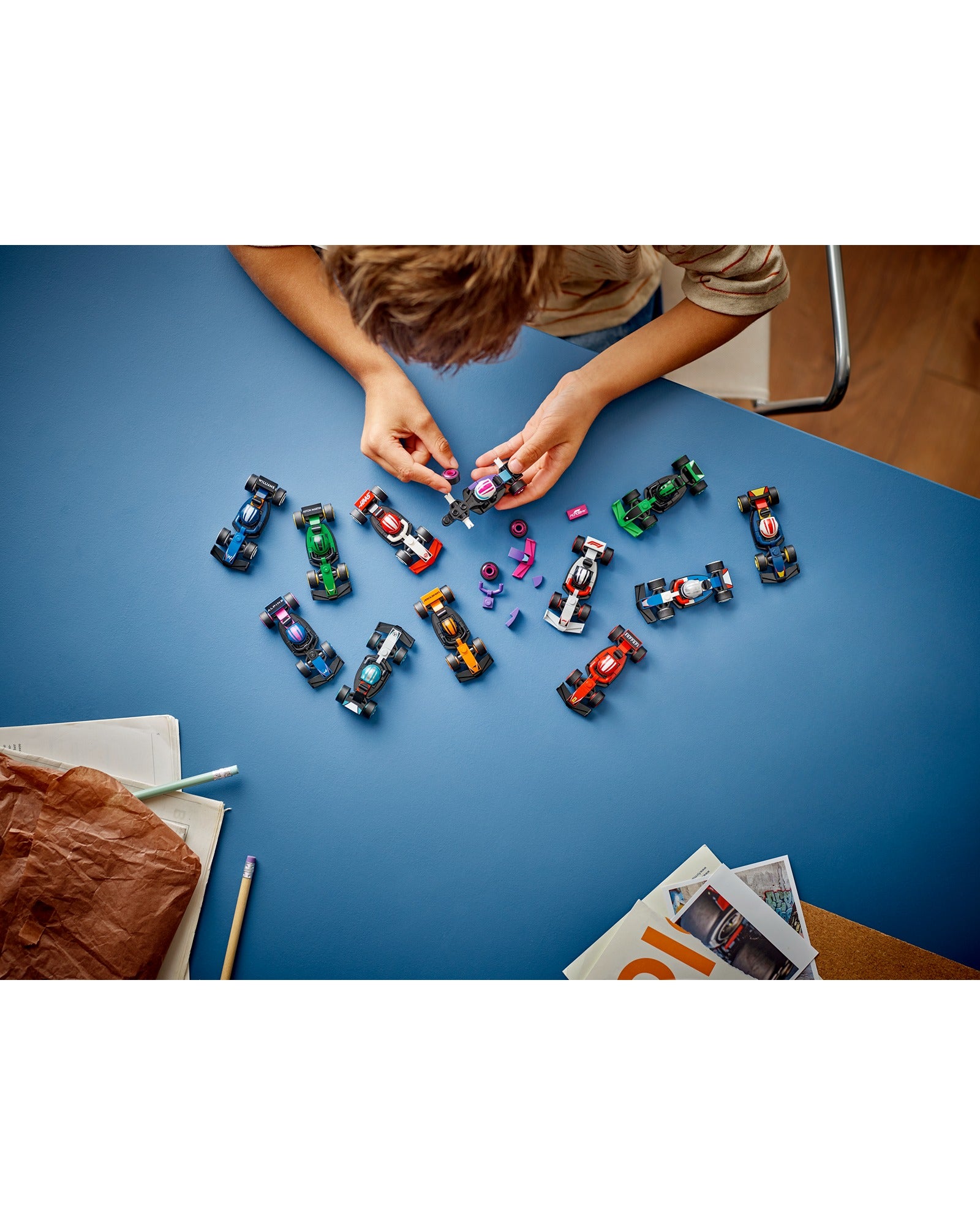 There is 1 surprise LEGO F1 Collectible Race Car in each vehicle kit and a total of 12 to collect: an F1 car, an F1 ACADEMY™ car, and 10 cars from the Formula 1 teams: RB20, Mercedes-AMG, Ferrari, McLaren, Aston Martin, Alpine, Williams, VCARB, Sauber and Haas.