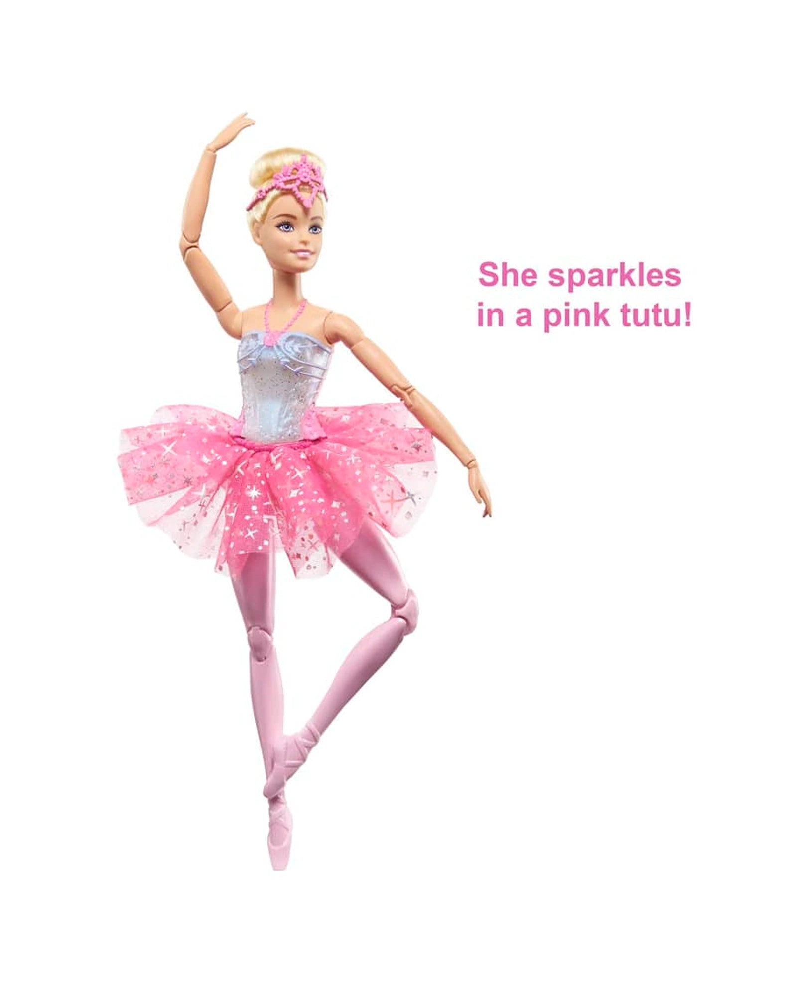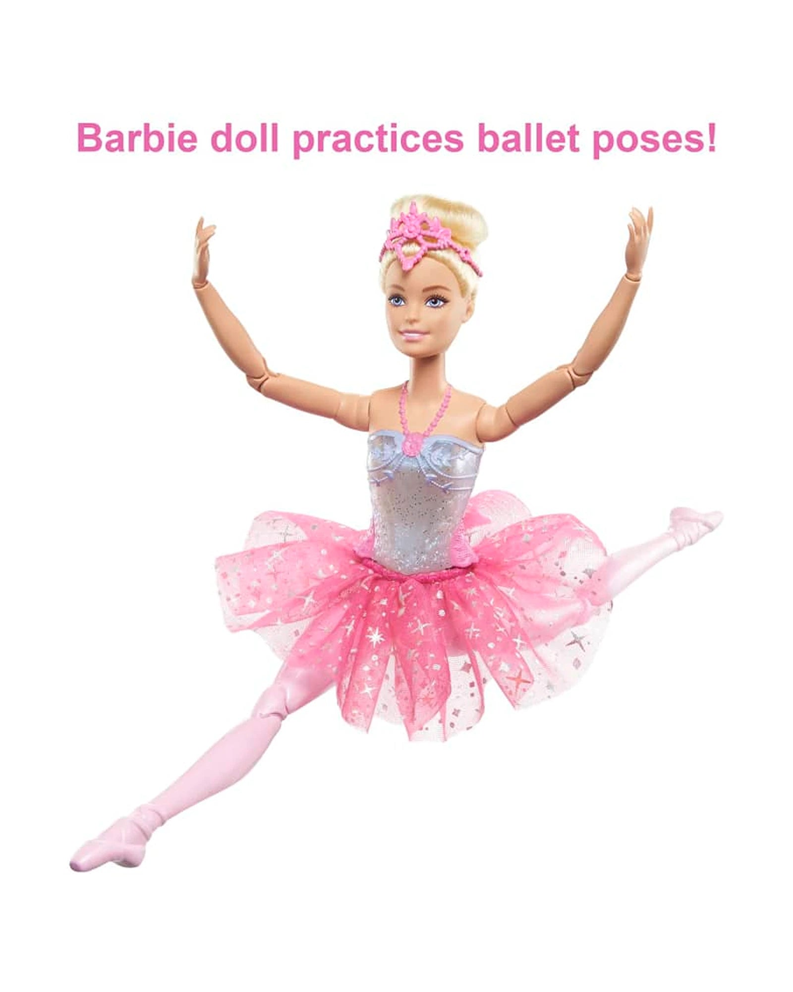 Watch Barbie® doll light up as she 'dances'! These beautiful ballerinas have a magical light-up feature to add a whimsical touch to playtime. Their articulated, posable bodies in shimmery outfits add to storytelling. They make great gifts for fantasy lovers, too! Each sold separately, subject to availability. Barbie® dolls cannot stand alone. Colors and decorations may vary.