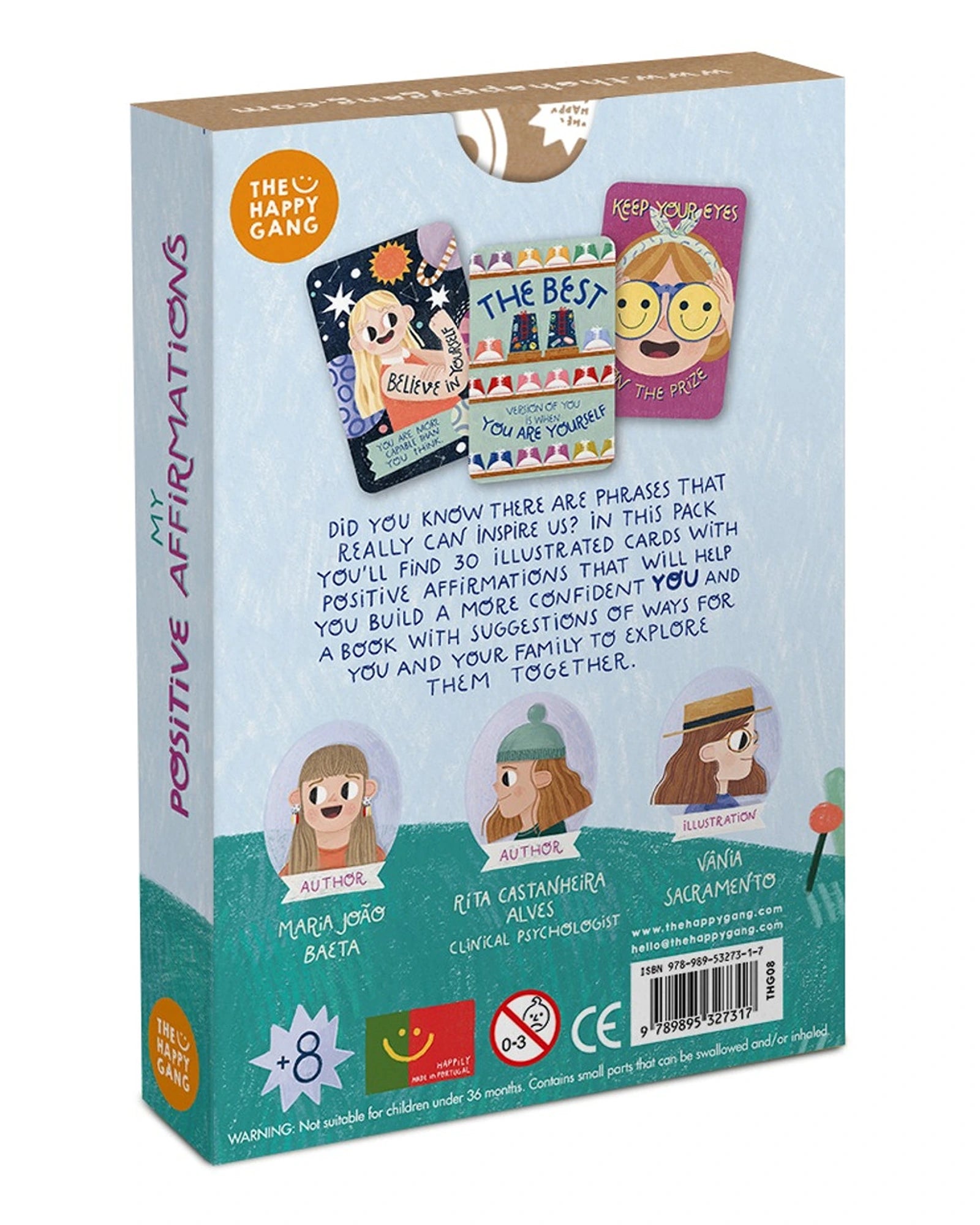 The "My Positive Affirmations" Flashcards, by The Happy Gang, are a box with 30 cards illustrated by Vânia Sacramento, full of inspiring phrases. Ideal for children aged 8 and over, this set promotes self-confidence and offers a book with suggestions for exploring affirmations as a family. Perfect for use at home, school or in a clinical context, it encourages dialogue and the development of interpersonal skills.