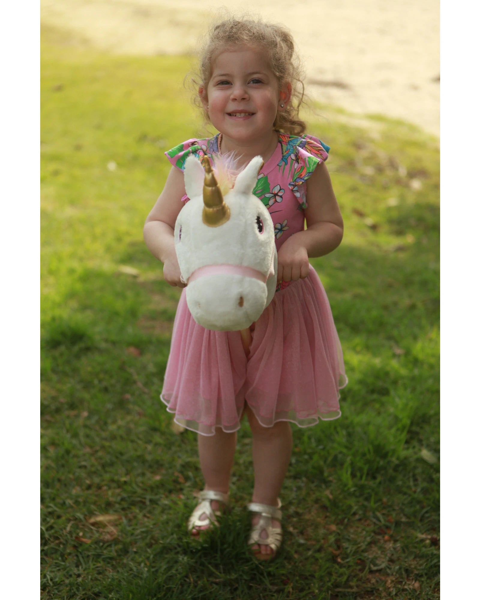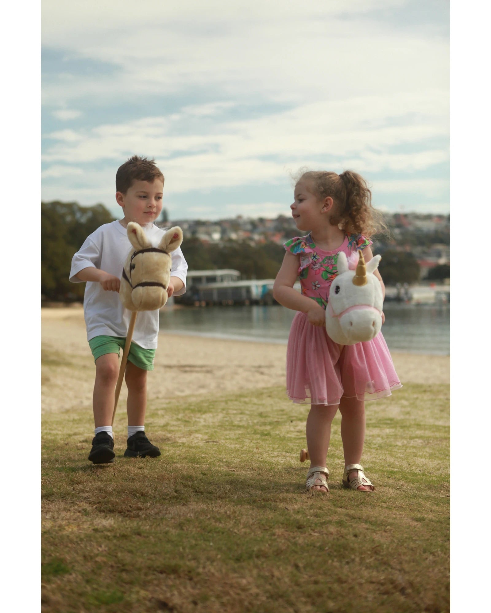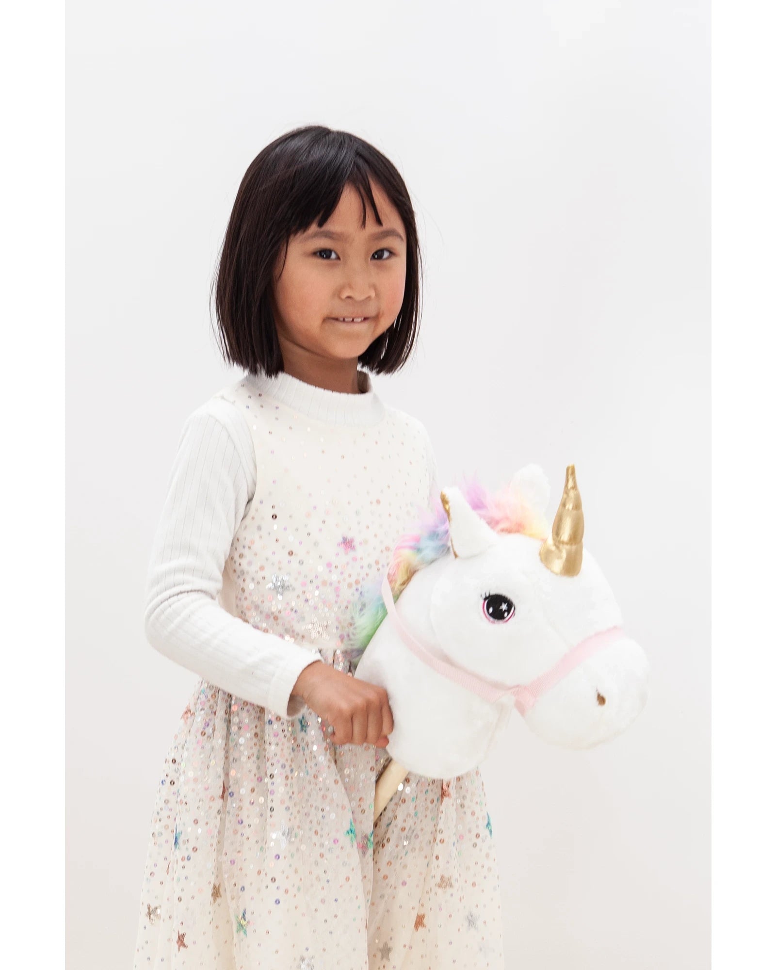 Relive the magic of childhood and share it with your little one with the Freya Lane Sparkle Unicorn Hobby Horse with sound!