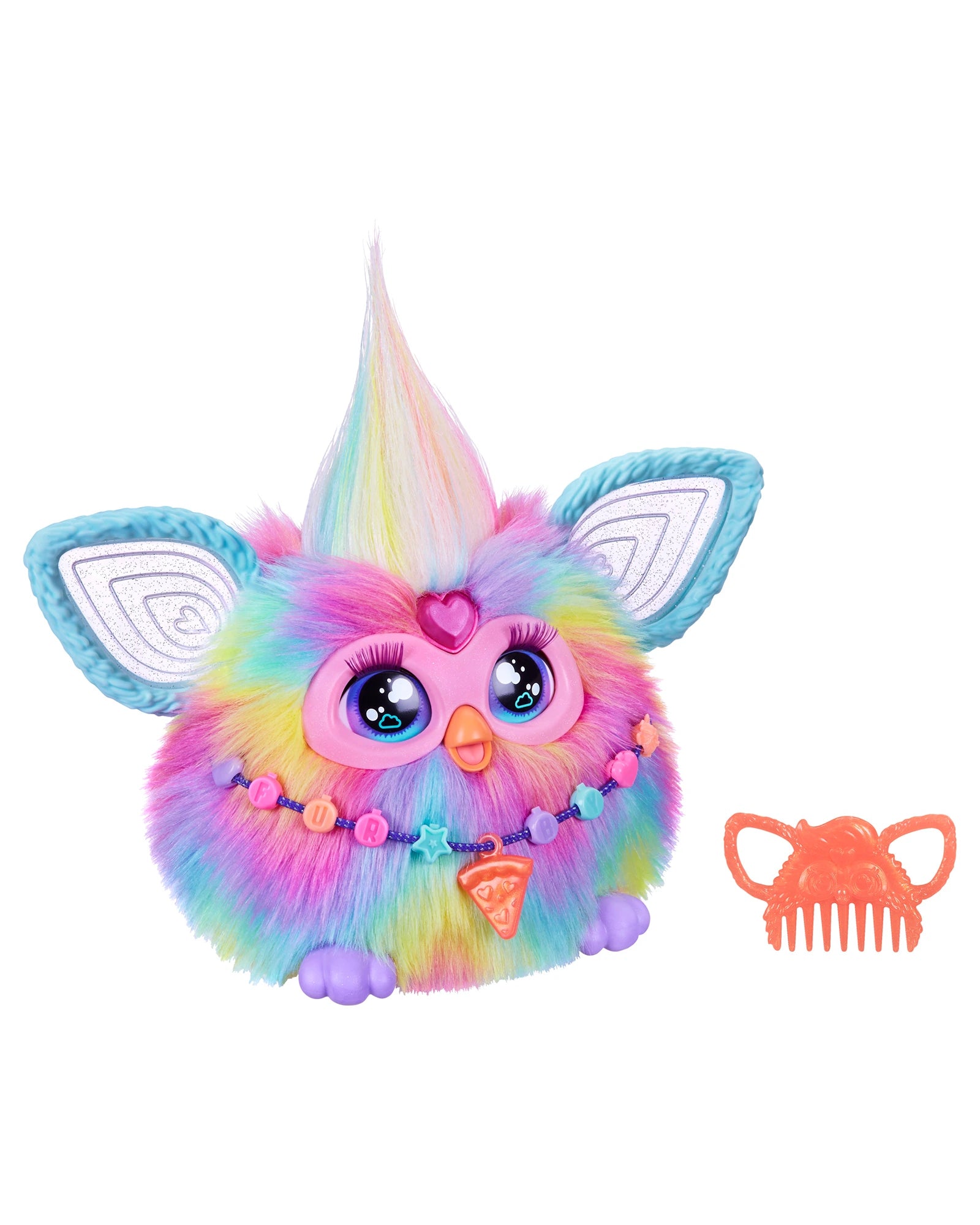 Hey shopper, meet Furby! This curious little creature is an incredibly interactive toy friend with 5 voice activated modes and over 600 phrases, jokes, songs, and so much more to discover. Tell Furby what you want to do with these 5 commands: Dance Party, Copy Cat, Tell My Fortune, Let's Chill, and Lightshow. Furby also responds to hugs, pats on the head, shaking, and feeding its pretend pizza charm (or your finger - yum). The more they play, the more fun they can unlock! Care for Furby by feeding them and combing their hair. Dress them up with the clip-on beads and make fashion accessories that kids can wear, too. Electronic plush toys for 6 year old girls and boys and up make great gifts for kids and a fun companion to have by their side. As Furby would say, ""Dah-no-lah"" (party time!) Furby and all related properties are trademarks of Hasbro.