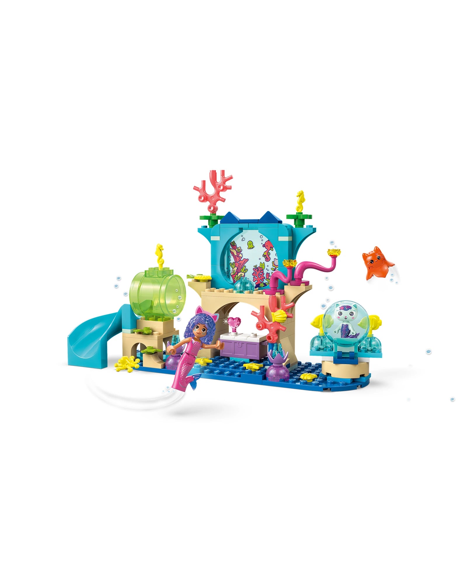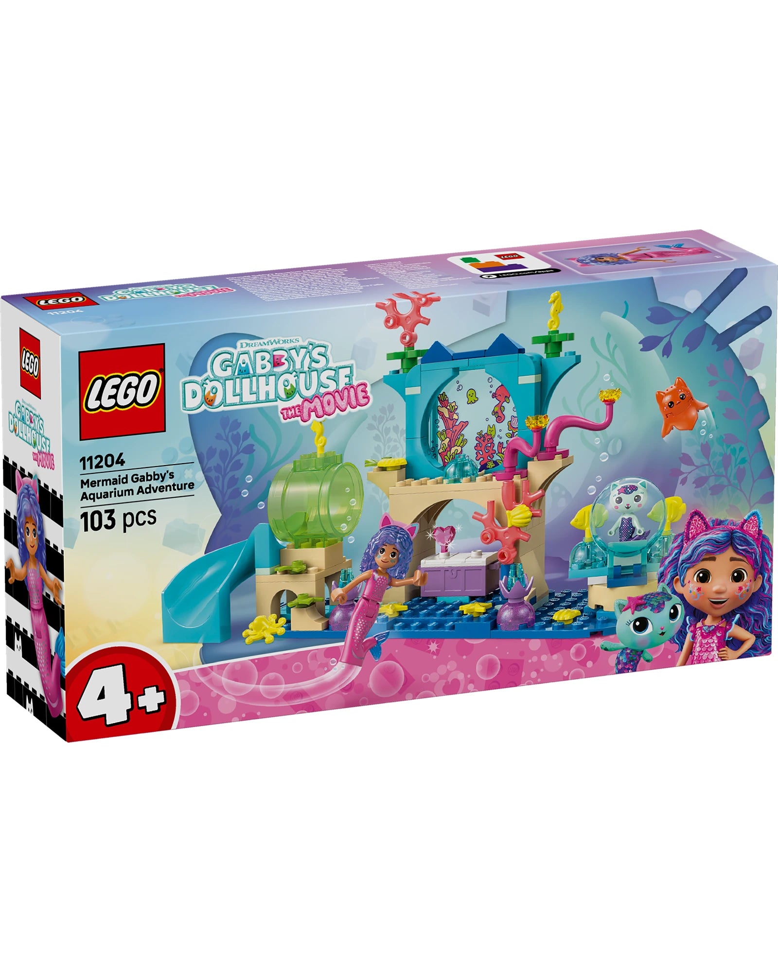 Mermaid Gabby’s Aquarium Adventure (11204) is a make-believe toy for kids aged 4 and over who are fans of sea creatures, aquarium animals and DreamWorks Animation’s Gabby’s Dollhouse: The Movie. This LEGO® Gabby’s Dollhouse playset is packed with vibrant features and familiar characters, including a Gabby minidoll in her mermaid outfit, and MerCat and Jellyfish figures. Kids can join Gabby and her pals to explore a colourful underwater environment filled with shells, plants and sea life. There’s lots to discover, including a slide, a giant bubble that MerCat can 'float' in, and coral that moves to reveal a hidden treasure chest. The set comes with colourful pictorial instructions, a large Starter Brick and separate bags containing 1 buildable model per bag to make creative construction fast and fun for little builders. LEGO sets for ages 4 and over are the perfect way for adults to share in the building fun with kids. Set contains 103 pieces.