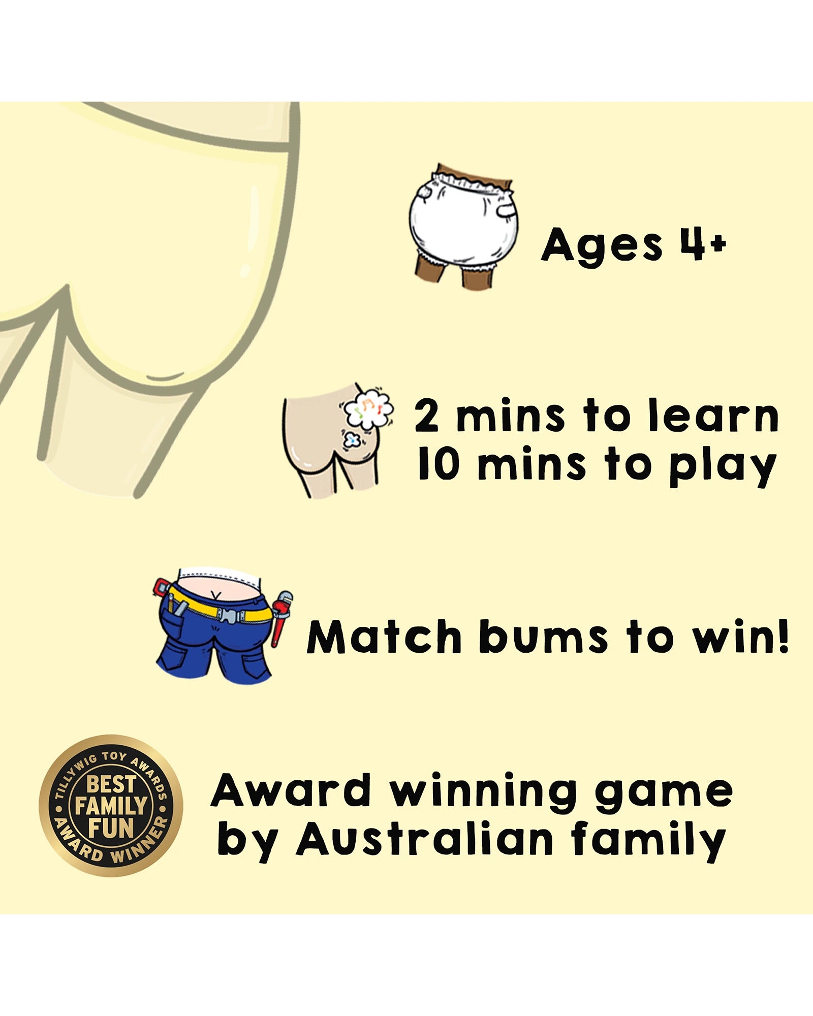 Do you have an Exploding Bum? Do you have a Tooty Bum? It’s the cheeky version of Go Fish where you match different kinds of bums to win. 2-7 Players | Ages 4+. Special cards for extra fun; We have created optional rules that give certain cards different points or which have a funny action.