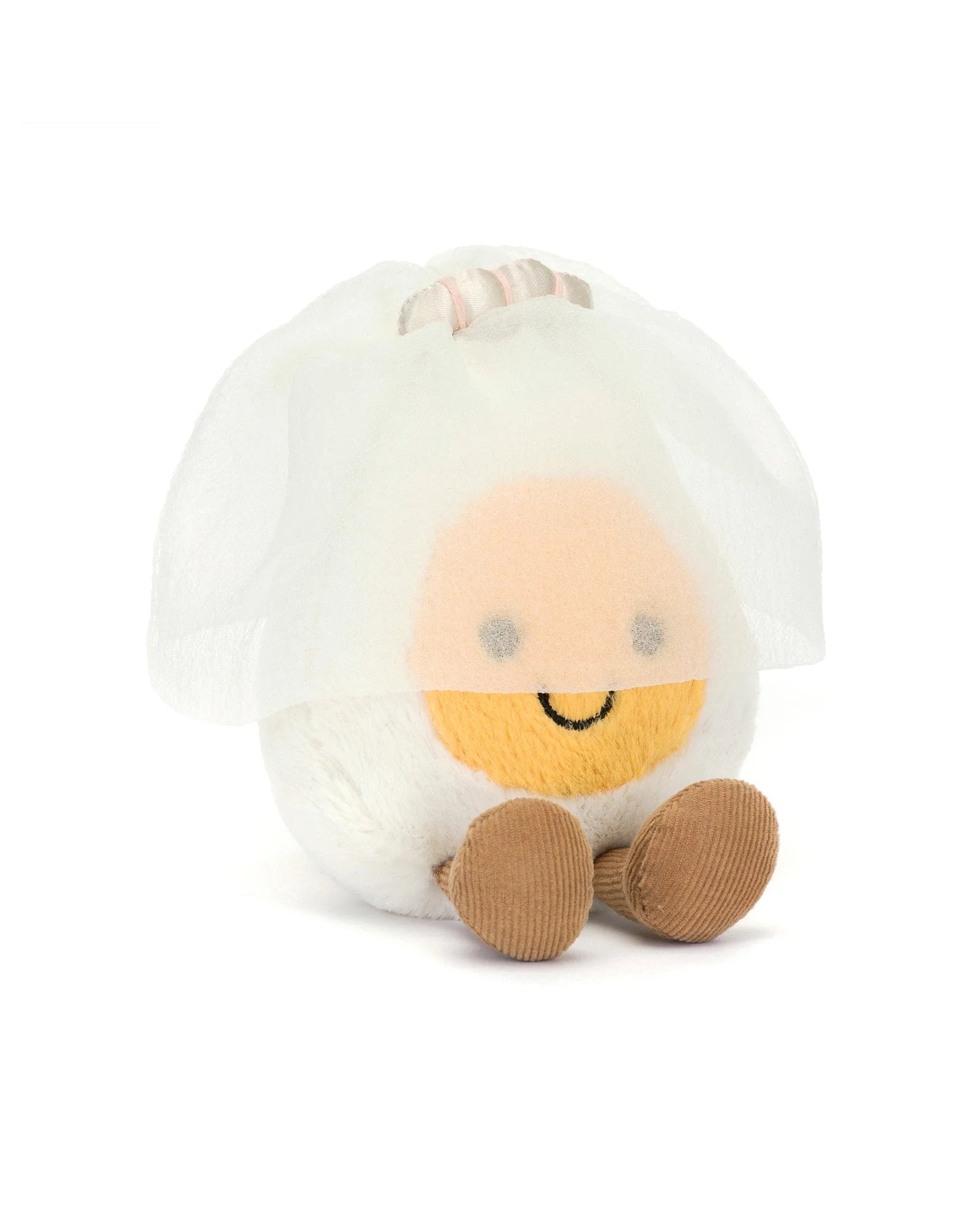Amuseables Boiled Egg Bride can't wait to walk down the aisle! With super-soft fur in cream and yellow, and a delicate veil secured with a pearl satin tiara, this egg is perfect to have and to hold!
