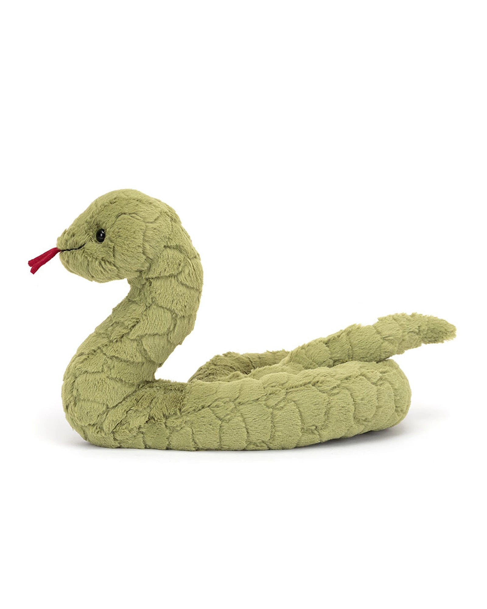 Stevie Snake is such a cheeky chum - always doing bleps with that suedey red tongue! Curly and springy, this grassy snake loves to coil and cuddle in squishy-soft knots! With funky scale fur, a perky pose, bright black eyes and a curious smile, Stevie's an abssssolute sssssweetie!