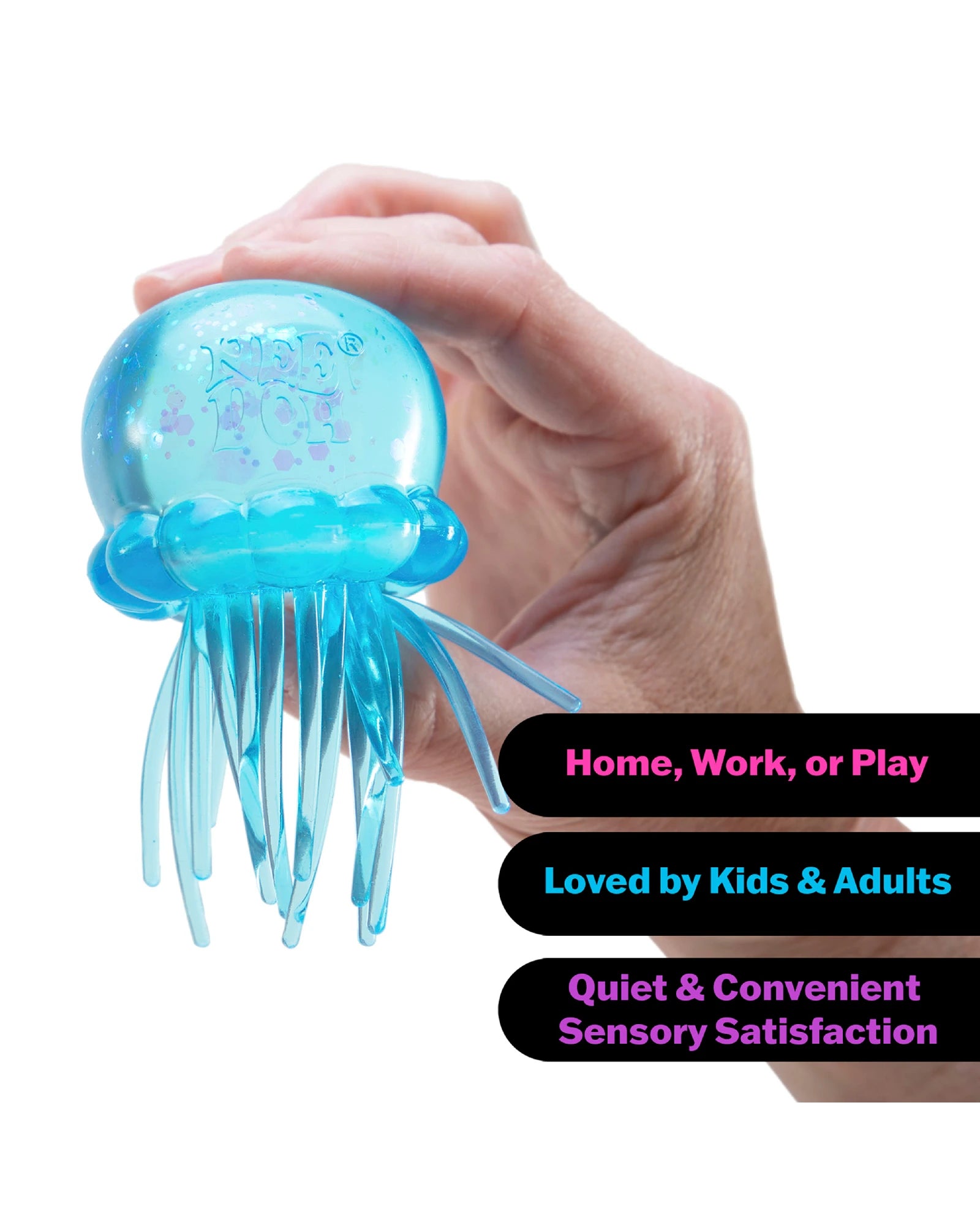 Glitter gives it a mesmerizing shimmer and smooth squish, enjoy the wiggly tentacles for added sensory delight! It's a sparkly solid squish that will calm and delight you.