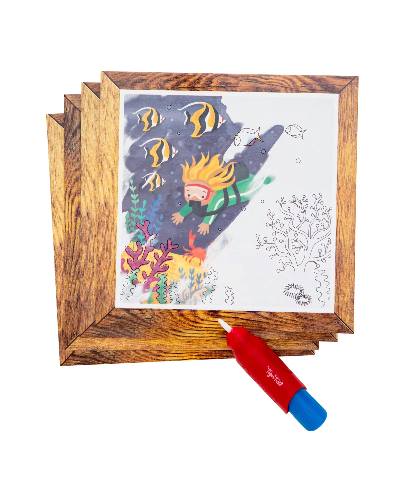 Become a magical artist with Tiger Tribe's Magical Painting World. Fill your magic paintbrush with water and reveal the gorgeous illustrations brought to life with every brush-stroke!
