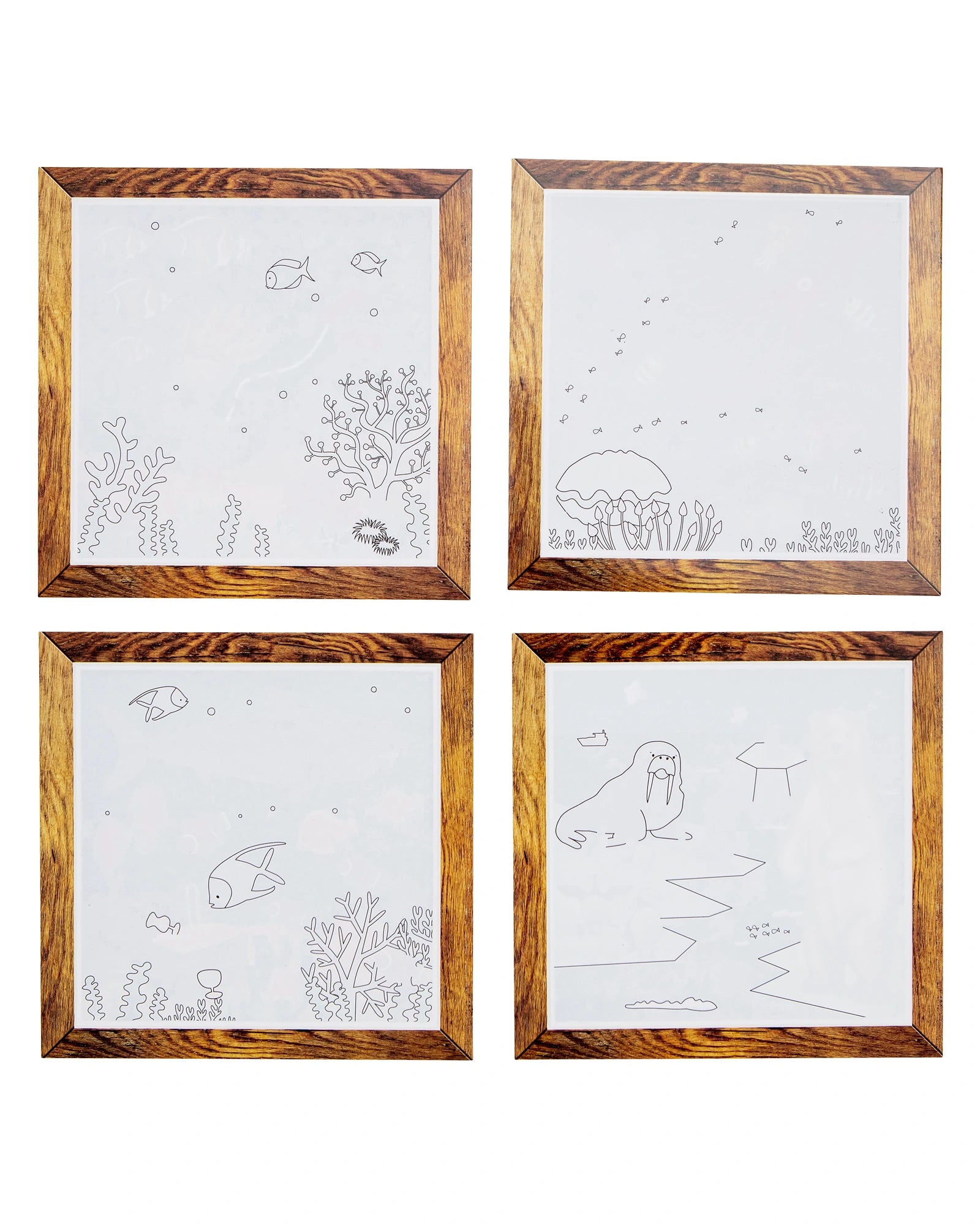 Ideal for portable play, each set contains 4 paintings for you to discover with your water-brush that can be revealed time and time again -- when your scene dries, it returns to white, hiding your magic world so you can keep playing over and over again. Each illustration board has things for you to find and count as you paint, providing hours of fun!