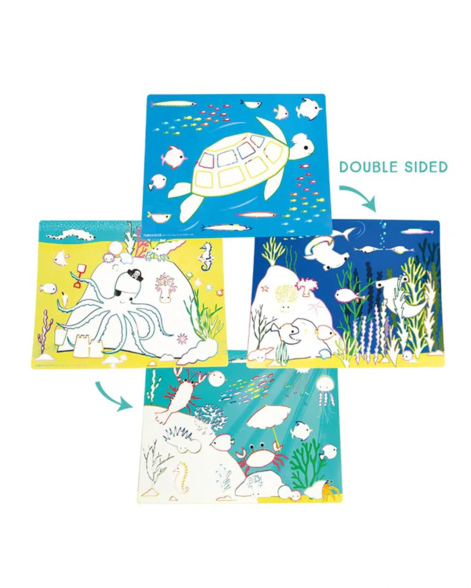 Make a splash with creative play using the Magic Water Mats – Ocean set by Floss & Rock! This clever activity set includes reusable ocean-themed mats and a refillable water pen that reveals vibrant illustrations with every stroke—no mess, no fuss! As the artwork dries, it fades away, ready to be used again and again. Packed in a compact, easy-to-carry case, it's perfect for on-the-go entertainment in cafés, on car trips, or during quiet playtime at home. With captivating sea creatures and underwater scenes, it’s a fun and educational way to encourage early learning and creativity.