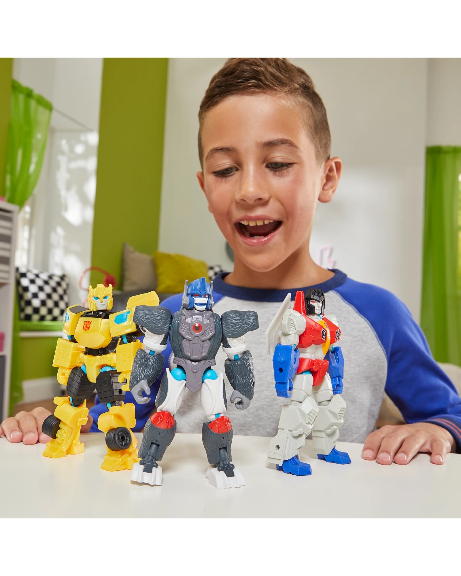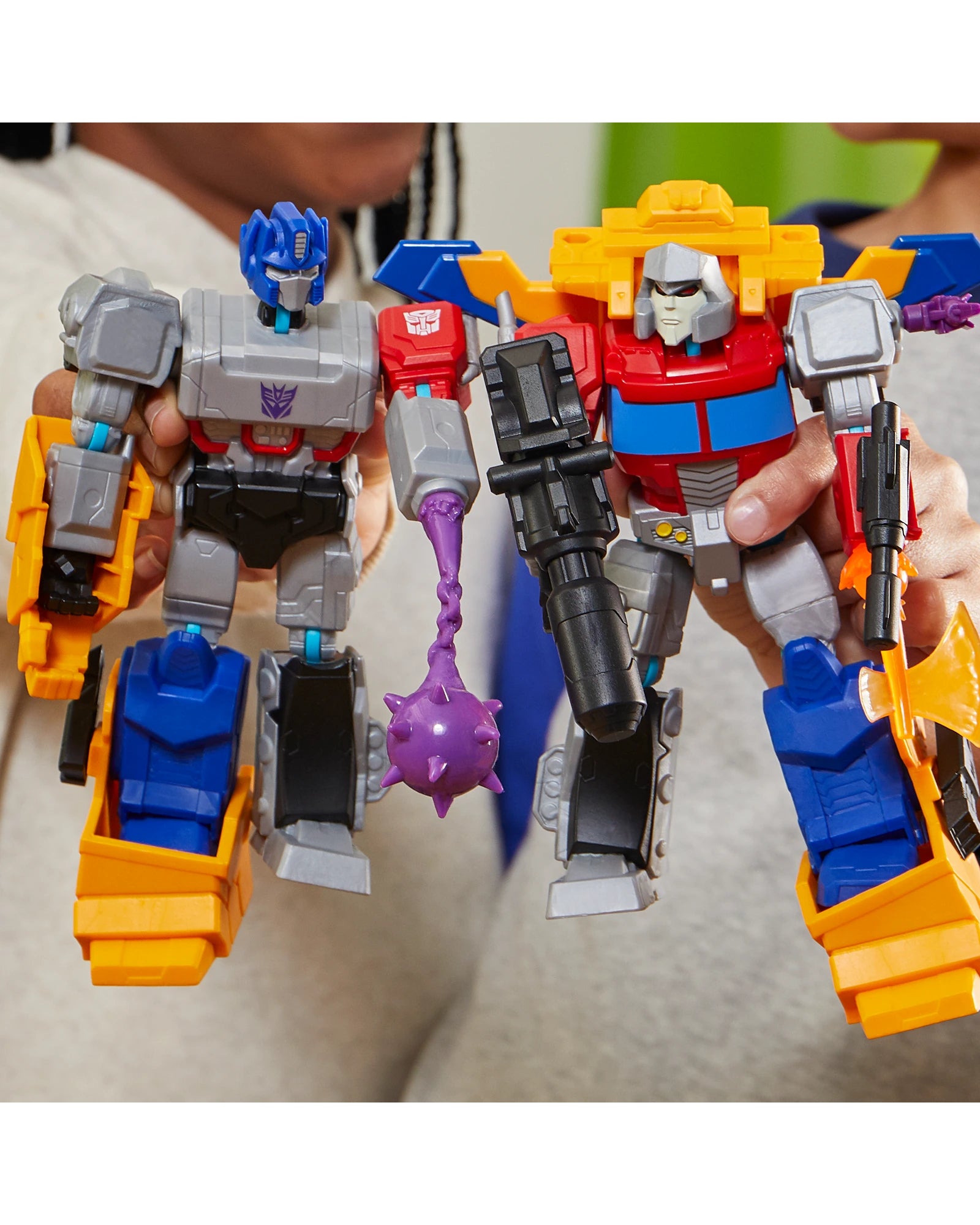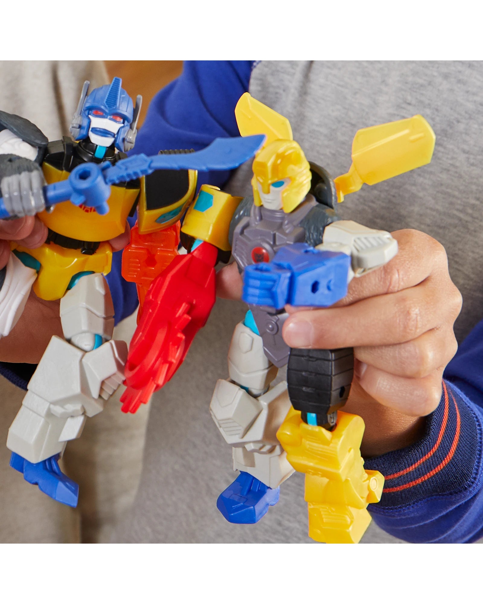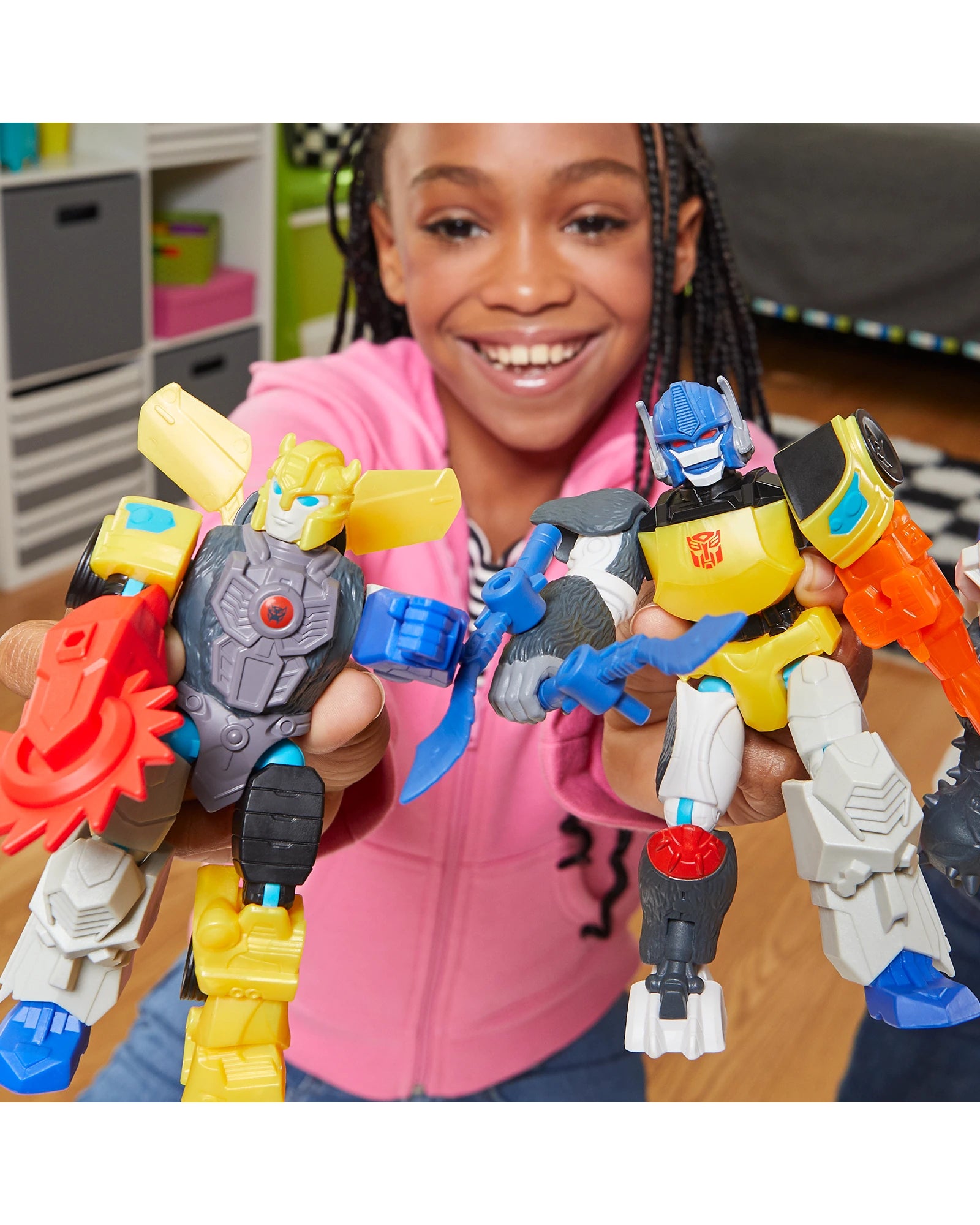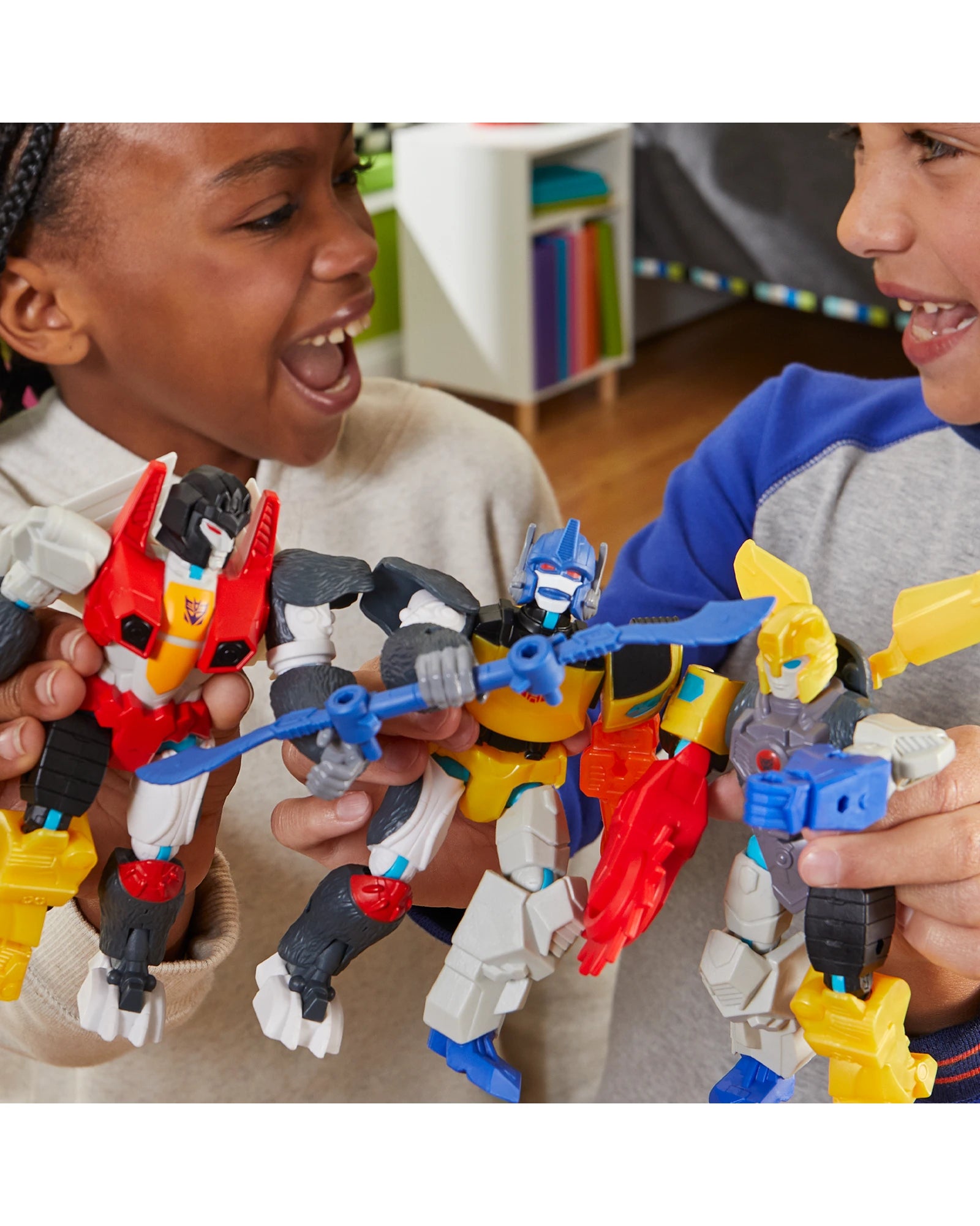 HEY, I KNOW THAT GUY: MixMashers Transformers figures feature only the most iconic heroes and villains, including Optimus Prime, Bumblebee, Optimus Primal, Starscream, and Megatron