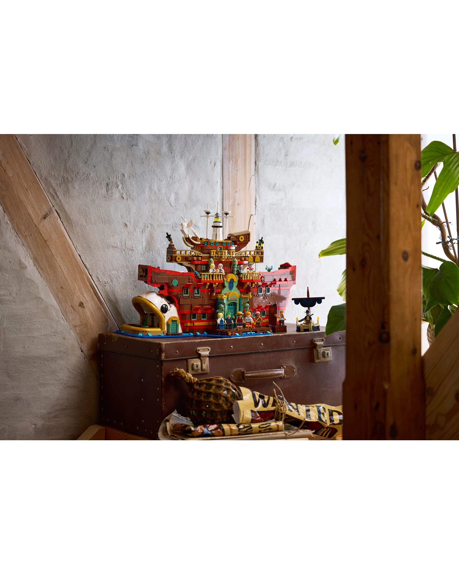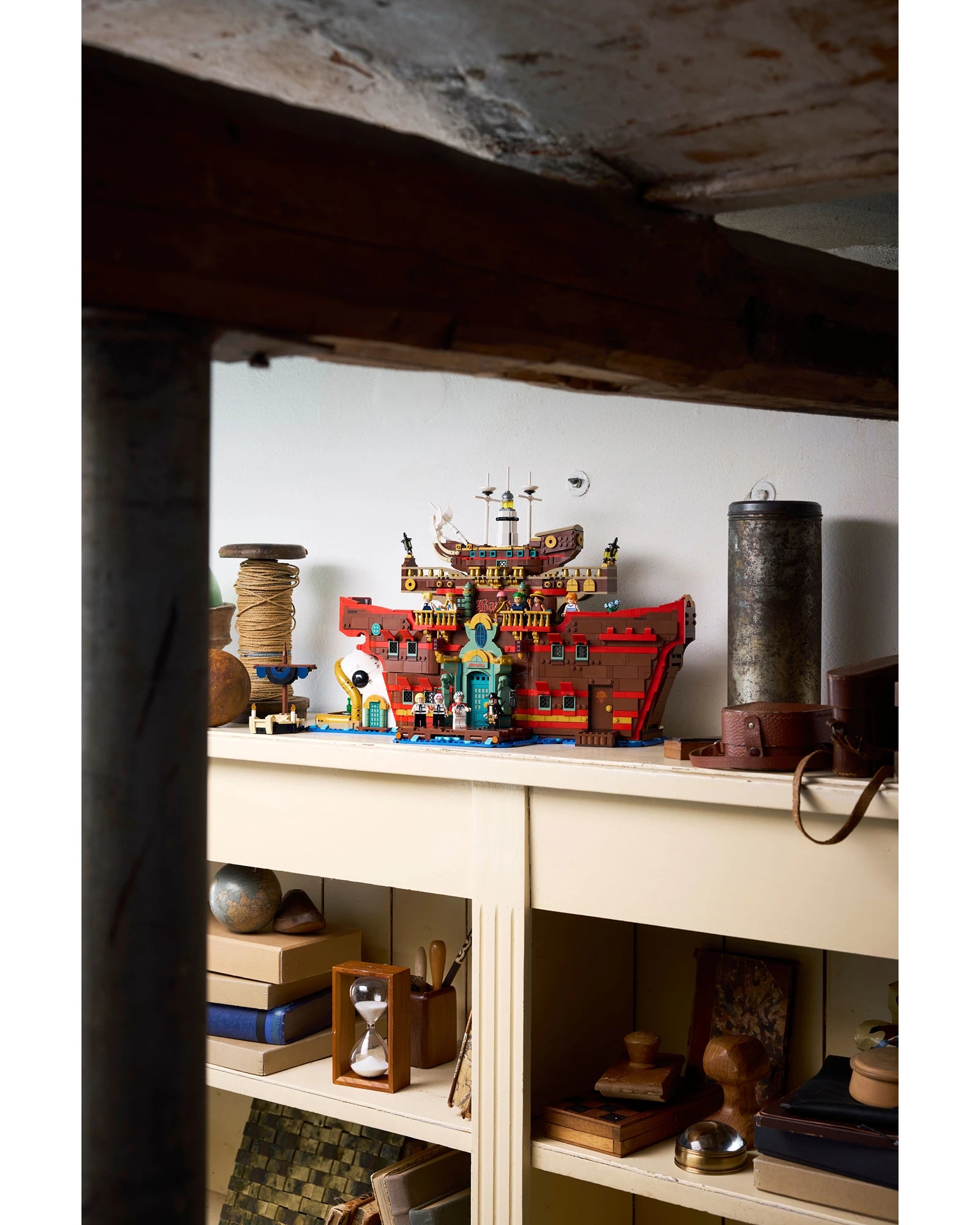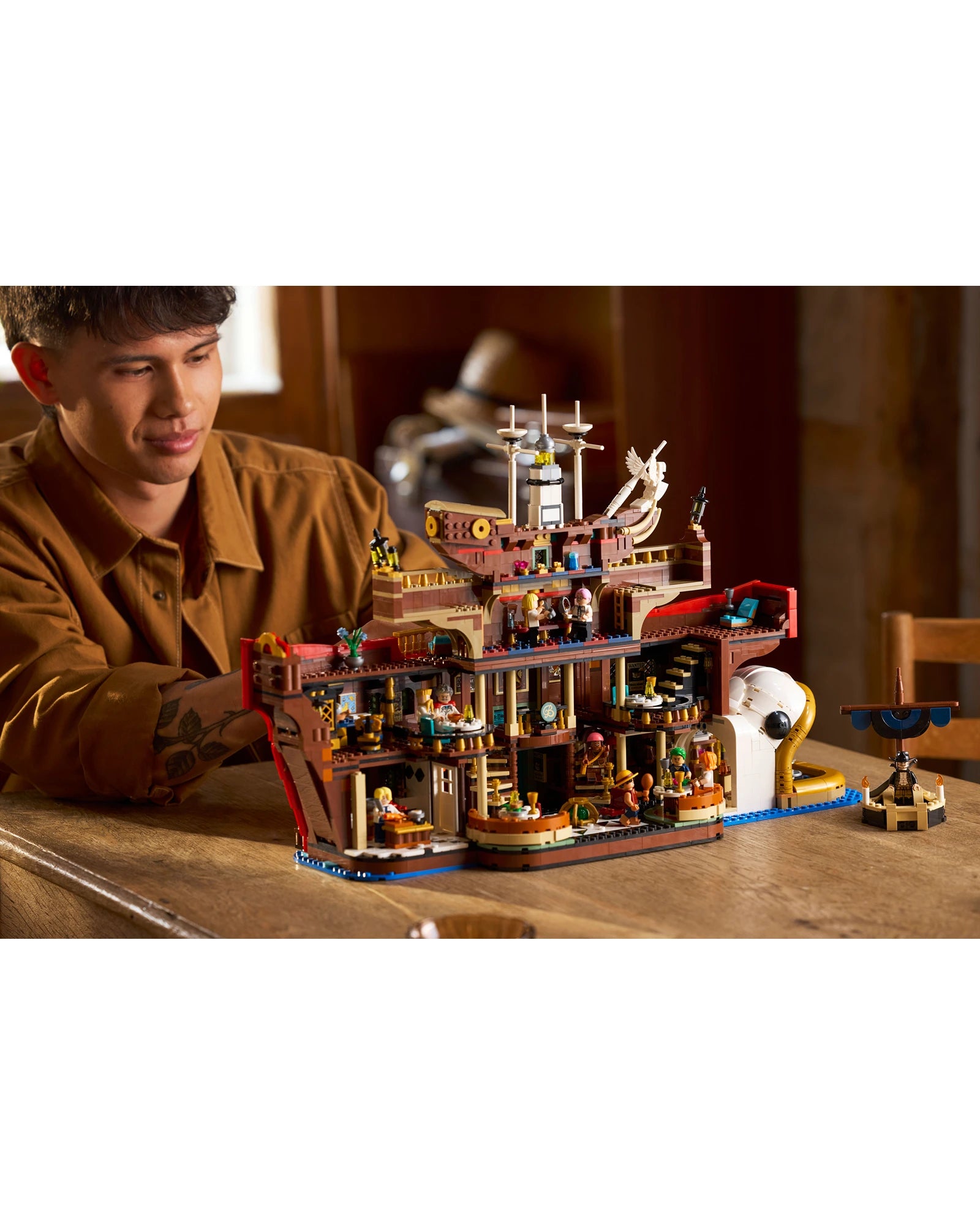 LEGO® ONE PIECE The Baratie Floating Restaurant (75640) recreates the iconic setting of many ONE PIECE adventures. A great gift for adult fans of the ONE PIECE Netflix live action show, the model is packed with authentic details and an iconic cast of minifigures from the show. This impressive ship-shaped display piece contains many accessible rooms within its interior, including kitchen and dining areas, Zeff’s quarters and the treasure room. Classic scenes can be reproduced with the 10 LEGO minifigures: Luffy, Zoro, Nami, Usopp, Sanji, Zeff, Garp, Helmeppo, Koby and Mihawk. This kit also contains authentic accessories, including 5 'Wanted' posters. The LEGO Builder app lets users zoom in, rotate models in 3D and track progress as they build. The extensive LEGO Sets for Adults range offers model-builders an immersive and rewarding experience. Contains 3,402 pieces.