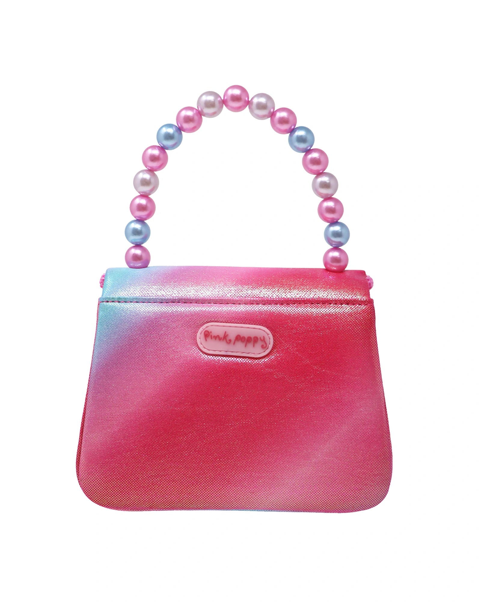 Pink Poppy's Mermazing Mermaid Handbag is adorned with a gorgeous shinny bright pink, purple and blue gradient fabric paired with beautiful pearlised beads for the handles. Completed with a magnetic stud for easy closure and an additional cord shoulder strap for hands-free play, it is the perfect accessory for any occasion. This bag perfectly pairs with our mermazing mermaid dress or tail, buy them all to complete the outfit! Designed in Australia