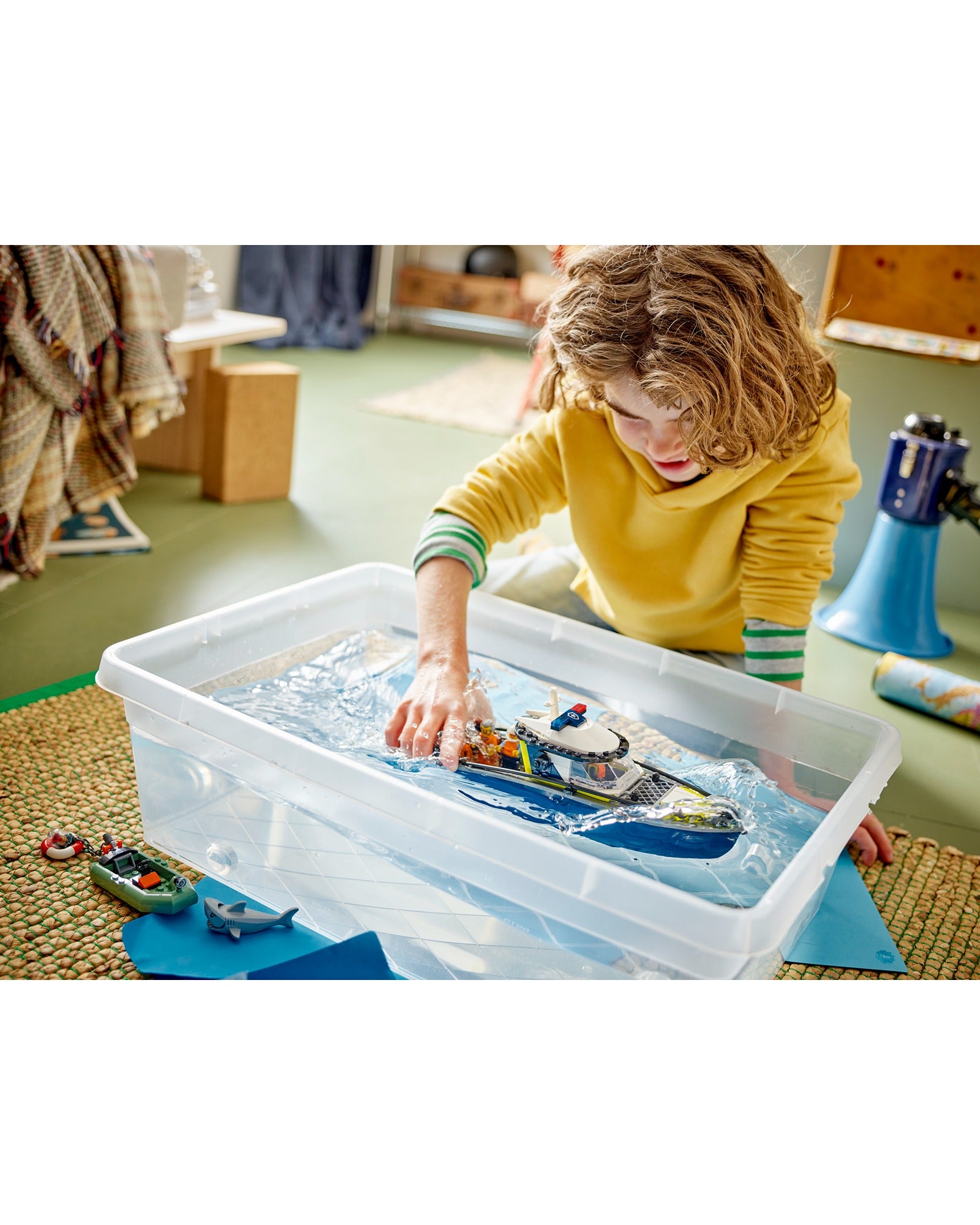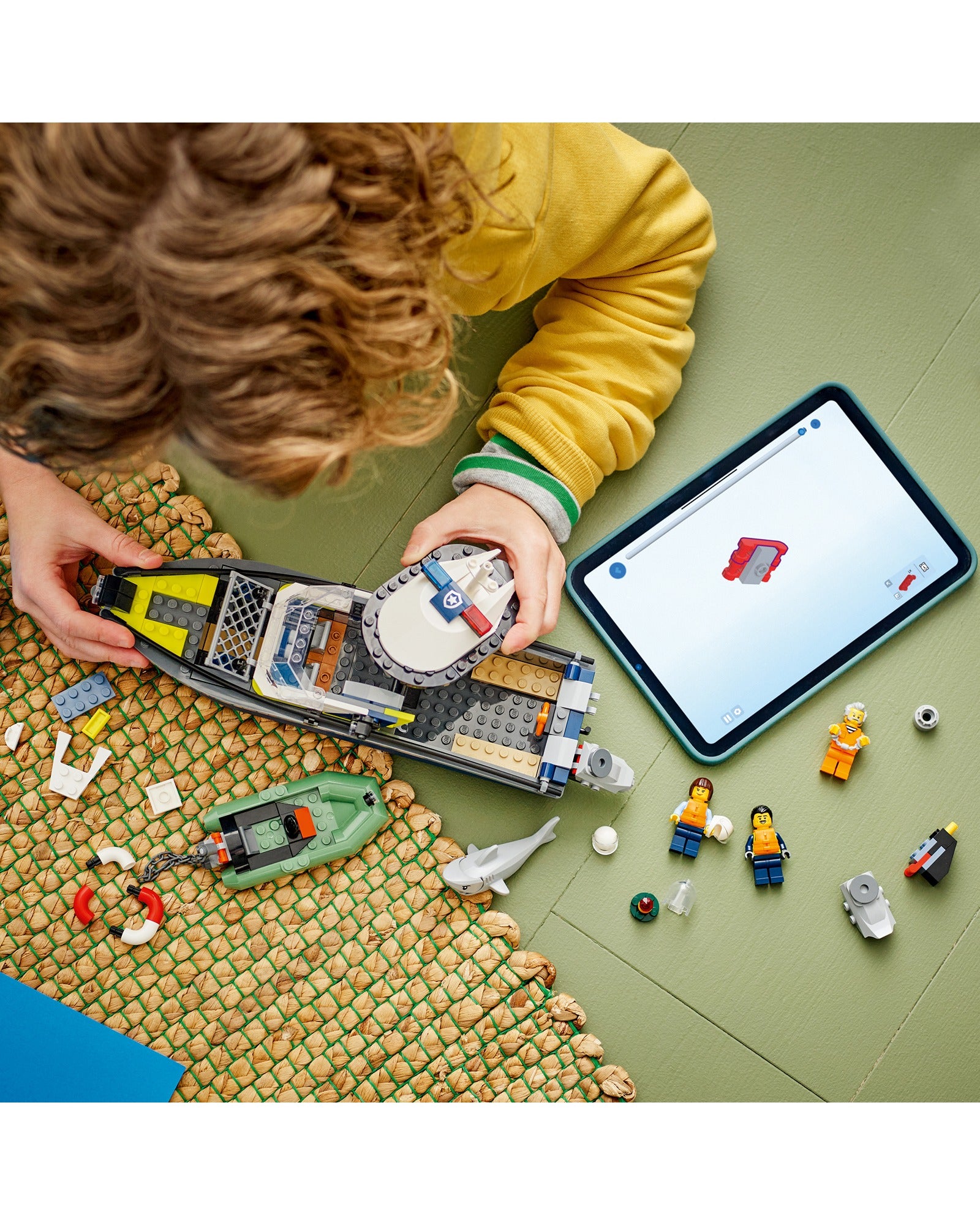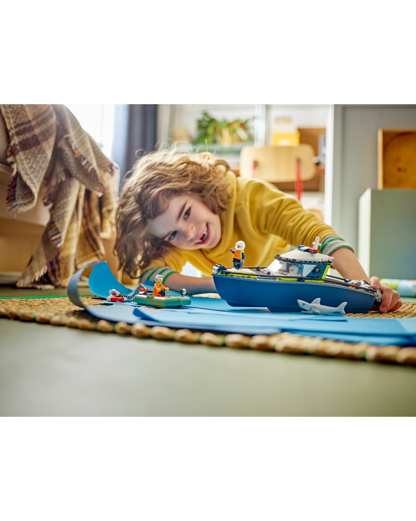 Budding everyday heroes will love this LEGO® City Police Boat Chase (60456) playset. Perfect for builders aged 6 and up, this set features a toy police boat with twin outboard engines and an onboard holding cell, plus a crook’s power dinghy. Kids can float both boats on water and dive into exciting police-chase adventures with 2 police officers, a crook, a snappy shark and a stolen ruby! This LEGO City building set includes a step-by-step printed building guide and digital instructions in the LEGO Builder app – a digital building companion with intuitive zoom and rotate tools that enable kids to visualize models from all angles as they build. Your City, No Limits! LEGO City playsets offer action-packed build-and-play adventures for limitless creative fun. Add this LEGO police set to others (sold separately) from the LEGO City range for even bigger adventures! Set contains 264 pieces.