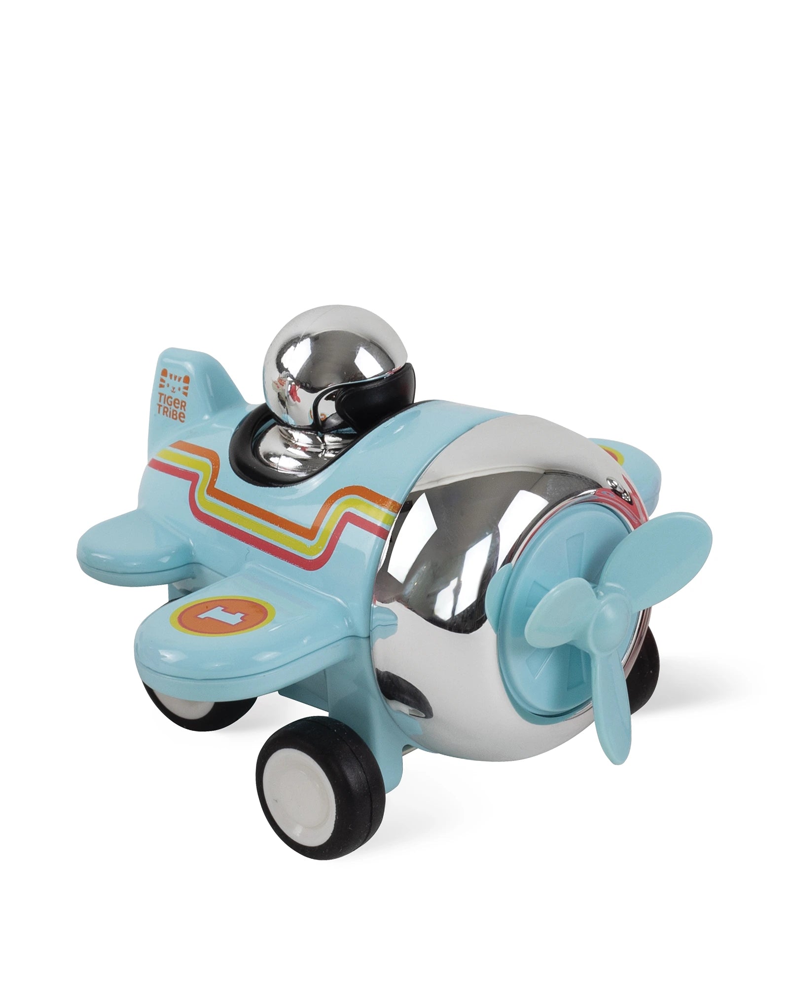 Hey, presto! Tiger Tribe's fun battery-free retro mini racing planes are ready to roll (not fly!) Kids will have a hoot with these nimble little planes, activating the forward momentum with a simple push-down, and they're off - taxiing down whatever runway you can find! In three fun and collectable designs - Swoop (Red), Lofty (Blue) and Drifter (Cream).