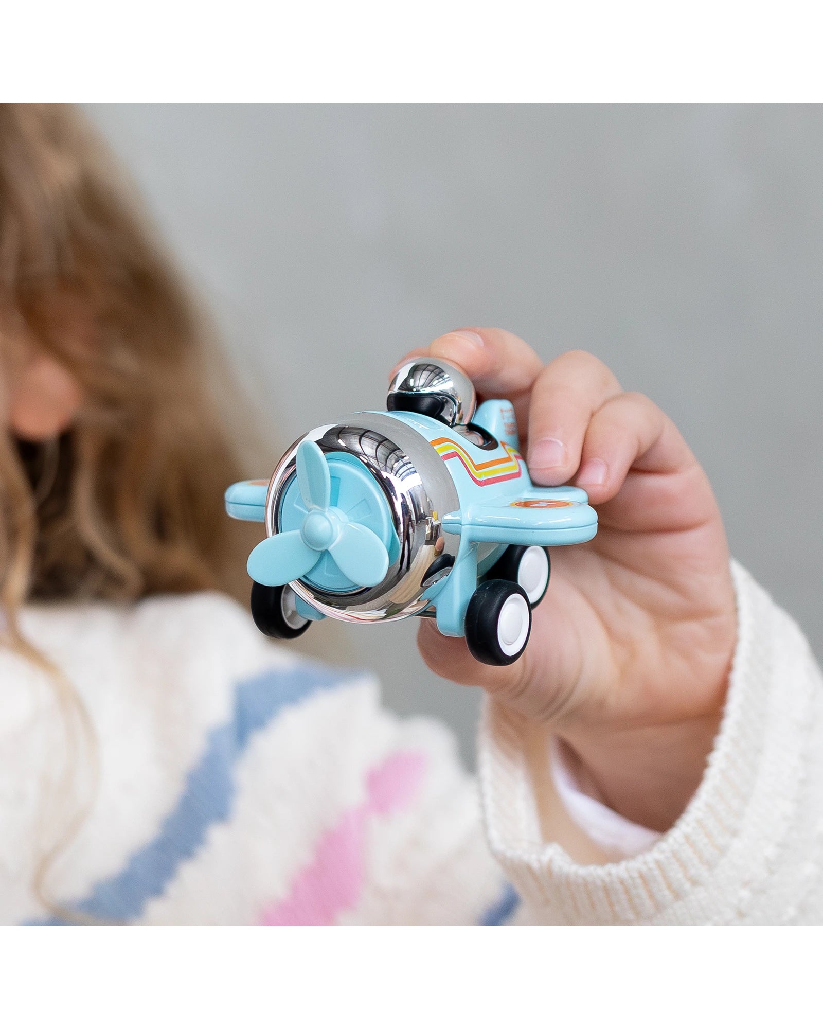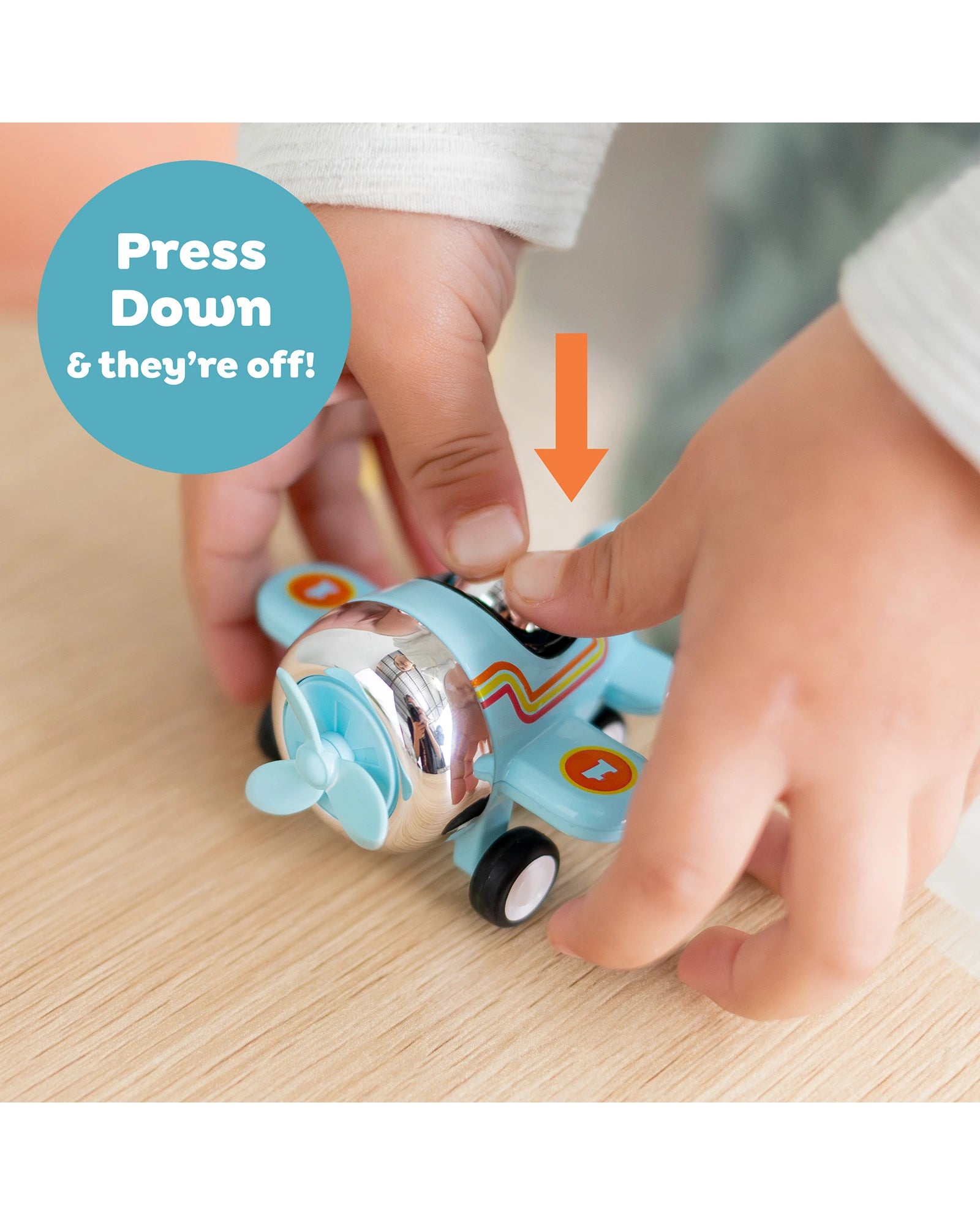 Please note: propellers are decorative only. Planes roll along the floor but do not fly.