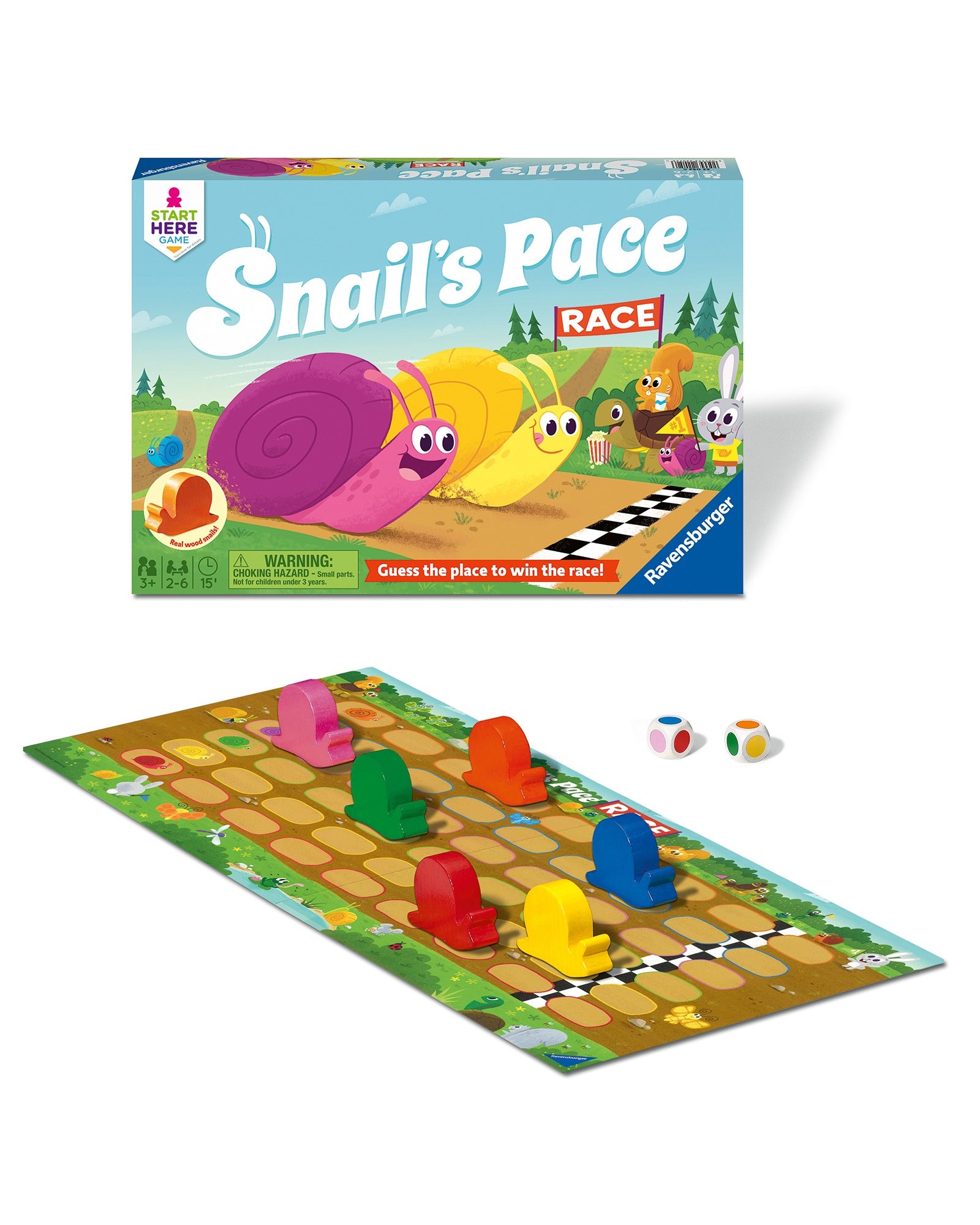 Which snail will come in first and which will come in last? Ready, set, go little snails!