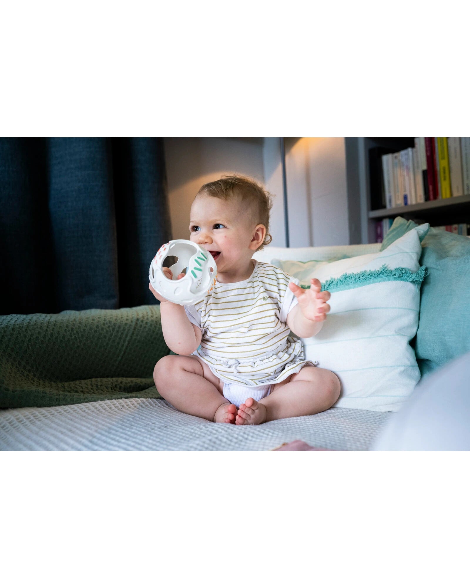 Sensory and teething ball, perfect for developing baby's grip and tactile awakening, while relieving teething.