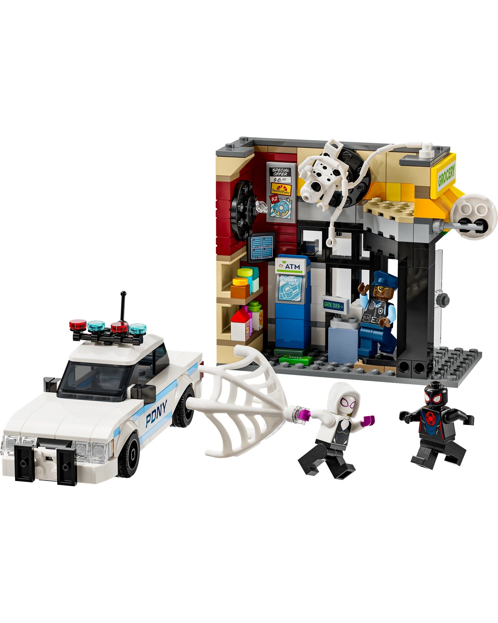 Spider-Verse: Miles Morales vs. The Spot (76311) is a high-quality buildable toy for fans of Marvel Studios’ Spider-Man: Across the Spider-Verse movie aged 9 and up. This build-and-play adventure LEGO® set makes an ideal gift for young Super Heroes, especially Marvel fans and kids who enjoy buildable, hands-on adventure toys. The Spider-Man playset comes with 4 minifigures: Miles Morales, The Spot, Gwen Stacy and Officer Jefferson. The convenience store has an exploding-wall feature that allows the ATM to be removed. Accessories include a long, flexible web rope and a flexible web that is large enough to encase a minifigure. The police car opens to allow 2 minifigures to be placed inside. For added digital fun, builders can zoom in, rotate models in 3D and track their progress using the fun, intuitive LEGO Builder app.