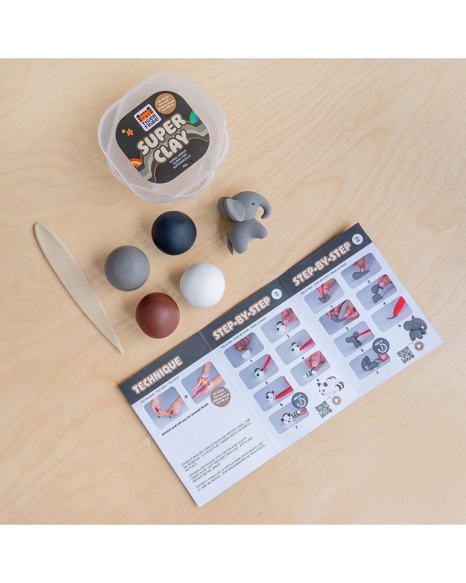 Tiger Tribe Super Clay brings big ideas to life with soft, lightweight, air-drying clay. Super Clay – Moonrise invites kids to roll, knead and sculpt vibrant colours to create two fun characters —a cat and elephant— using step-by-step visual instructions, or to shape whatever their imagination comes up with. No oven needed — just air-dry for play or display. Non-toxic and easy to use, this clay is perfect for sensory play and helps early learners build hand strength and fine motor control — ideal for developing writing and drawing skills. Comes in a resealable container to keep the fun mess-free and fresh.