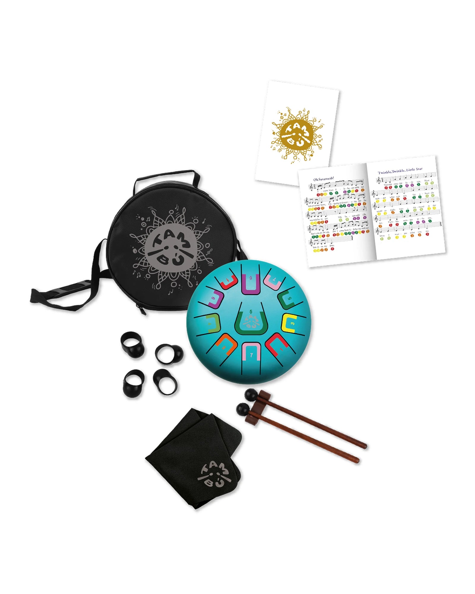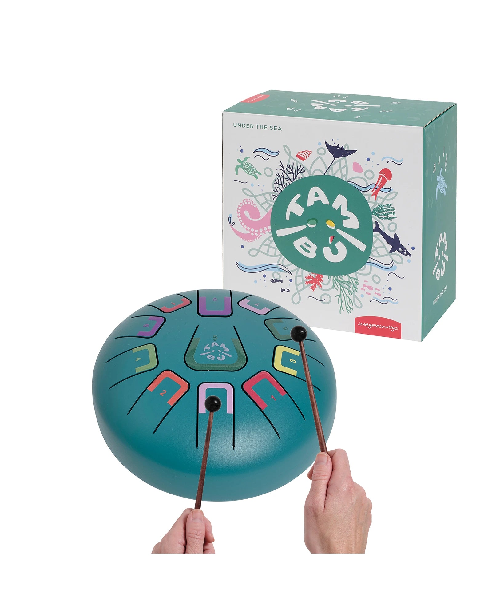 TAMBÚ steel tongue drum is a precious musical instrument to start in the fascinating world of percussion. It is a tongue drum and can be played in different ways. TAMBÚ emits different notes related to each other with a harmonious, long-lasting sound ("sustain"), which allows generating enveloping and very relaxing atmospheres.