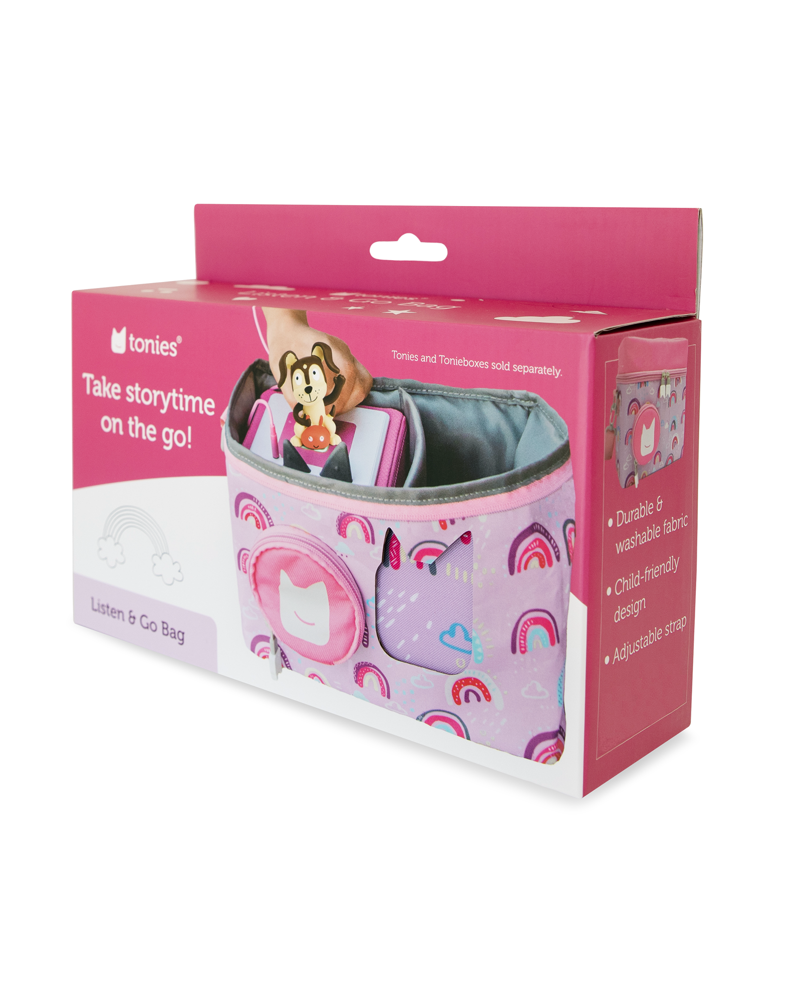Off we go ... with your favorite stories and adventures in tow! Pack up the Listen & Go Bag with your Toniebox, 7 or more Tonies, headphones, charging station, and other treasures to easily transport everything in one place!
