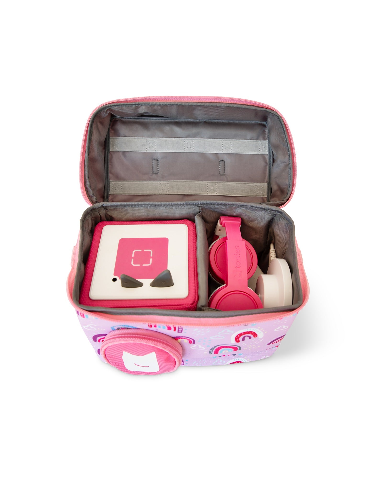 Enjoy on-the-go listening with this charming carry bag designed to accommodate your Toniebox, accessories and a small collection of tonies!
