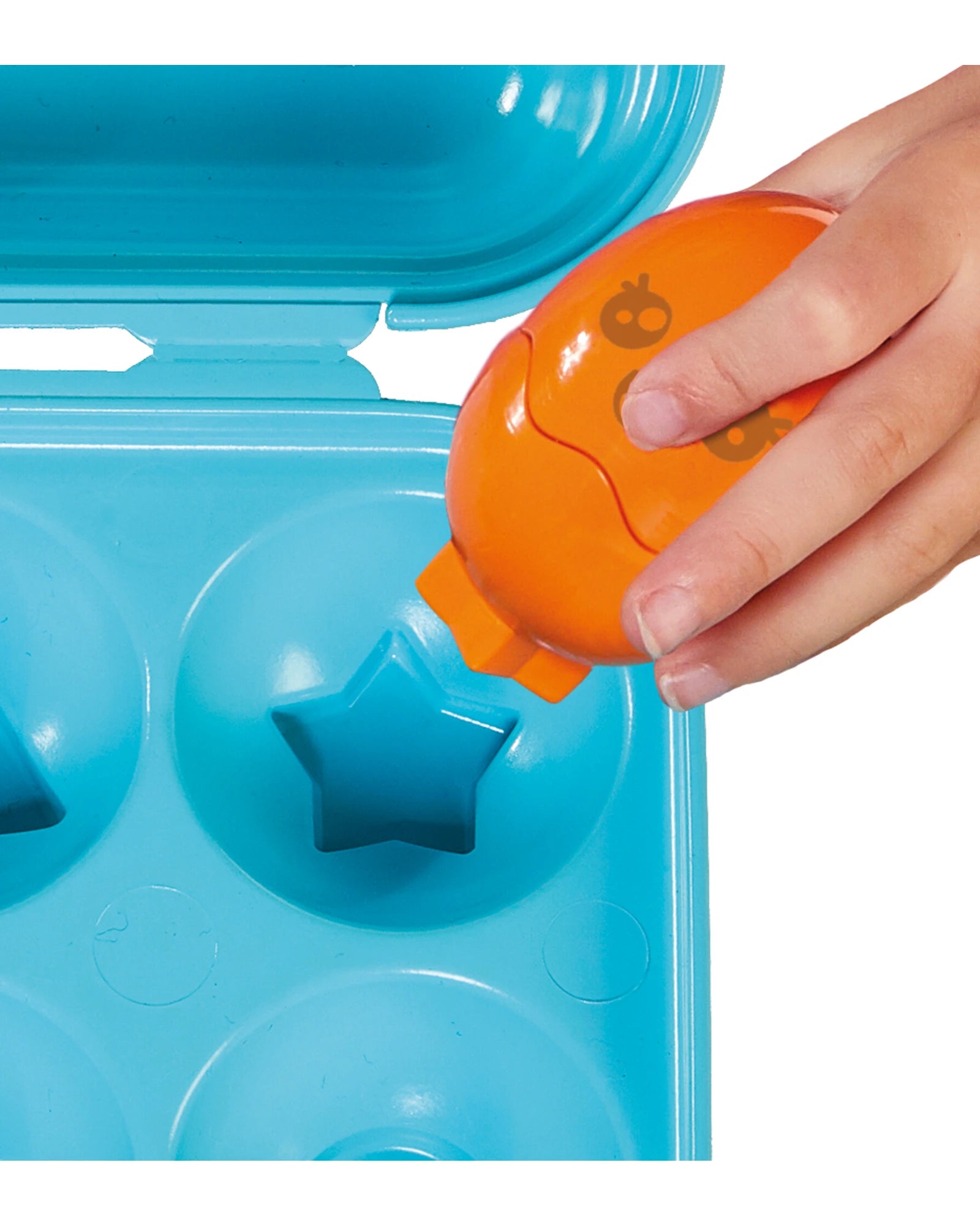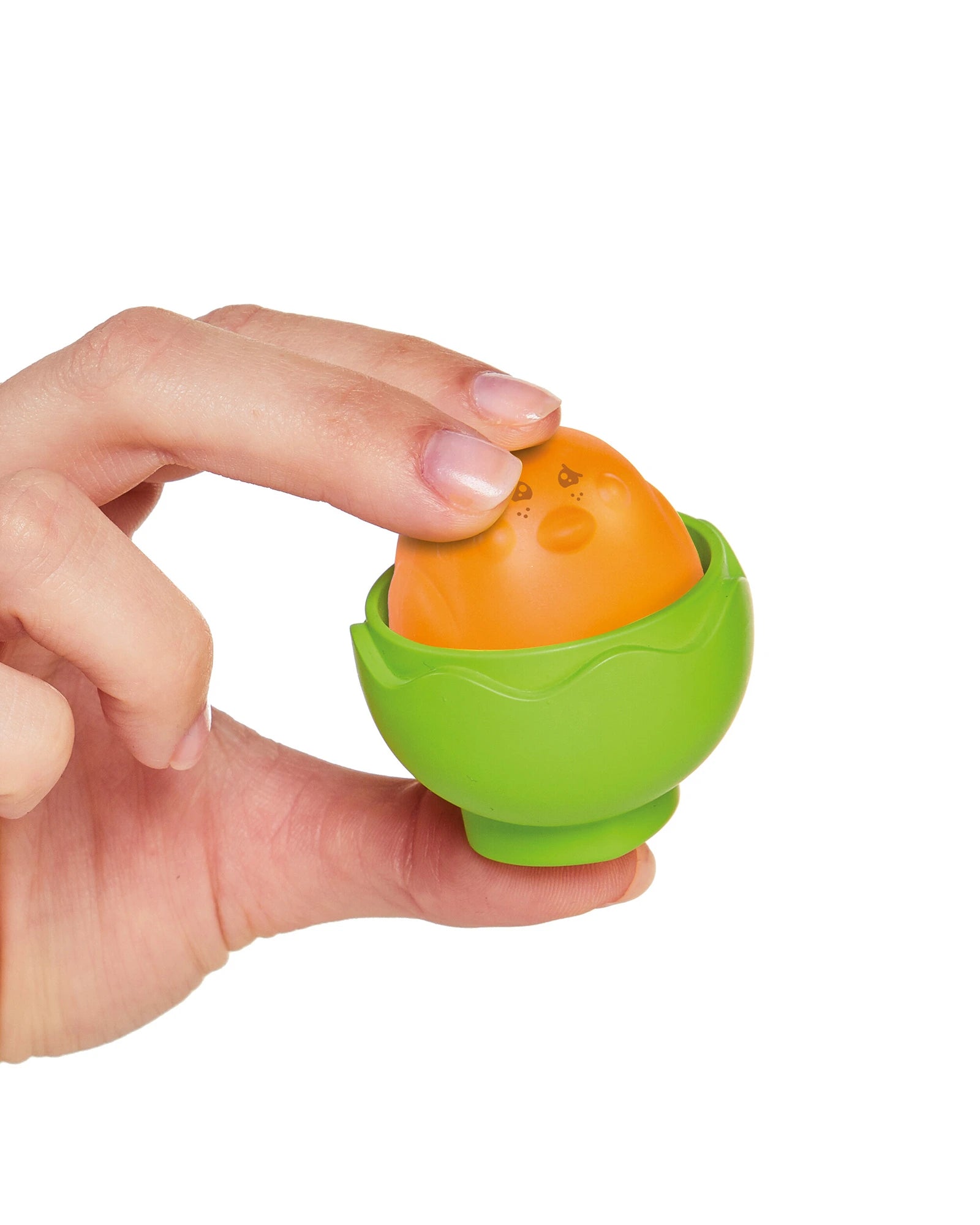 Bigger, Brighter and better than ever, say hello to this new edition for the fantastic rainbow colours Hide & Squeak® Bright Chicks. These best-selling half-dozen heroes have had a make-over! Hiding inside their sturdy, bright blue box, the eggs come in pink, purple, green, yellow, teal and orange. From six months on, babies will love to engage with these colourful, funny-faced eggs. They’ll also discover the brightly coloured chicks hiding inside the shells, with three that go cheep-cheep when they push down, and three that now rattle when they’re shaken. As children grow older, they’ll discover how the top half of the shells fit with the lower half, then start naming the colours and matching their funny colourful faces to the chicks inside. Mix them up again in an infinite number of combinations. Learn the egg colours and then guess which colour will be hidden inside. There’s also shape sorting fun as each base fit in its own unique slot in the bottom of the egg box. There are round pegs, square holes, triangles, stars and more to discover and remember. As they play, little ones will develop fine motor skills, logic, problem solving and vital memory skills. A clever alternative at Easter for Mums and Dads who’d rather avoid chocolate, Hide & Squeak® Bright Chicks are a welcome addition to the Toomies range all year round, and easy to take with you thanks to the sturdy storage egg box that clicks shut. No batteries required. Suitable for children aged 6-36 months and over.