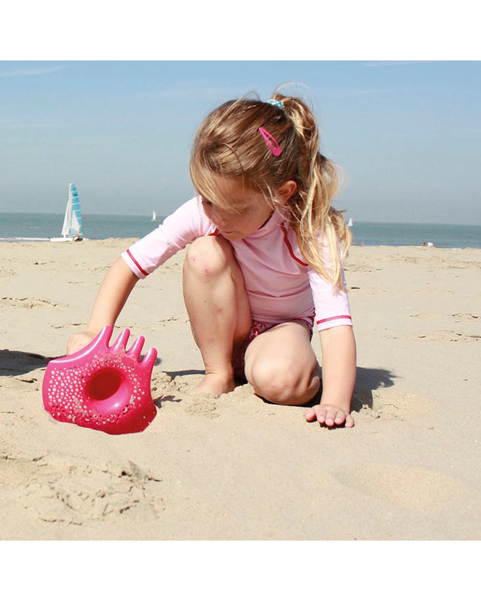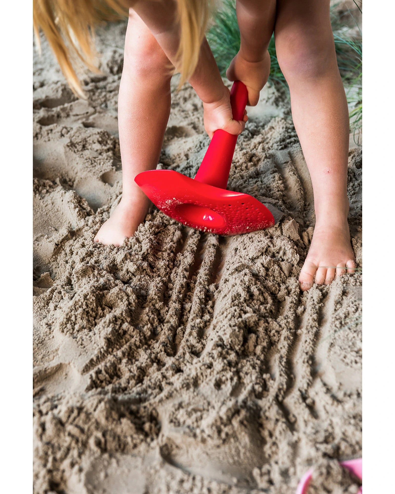 Part shovel, to help kids dig holes, build foundations and carve out moats, part sand sifter, to help remove shells and other sediment, for smooth, shapeable sand, part rake, to let kids create extra designs.