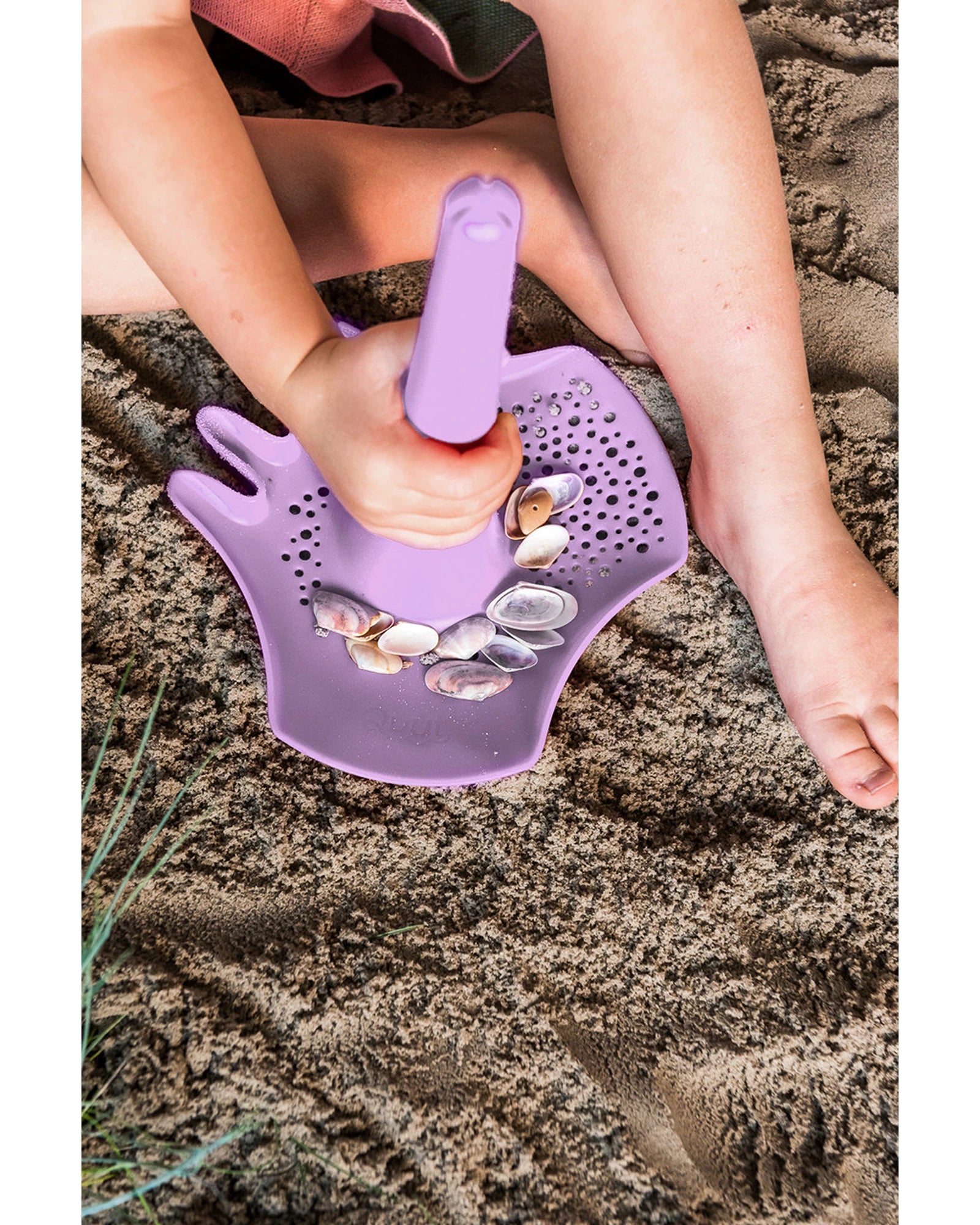 Part shovel, to help kids dig holes, build foundations and carve out moats, part sand sifter, to help remove shells and other sediment, for smooth, shapeable sand, part rake, to let kids create extra designs.