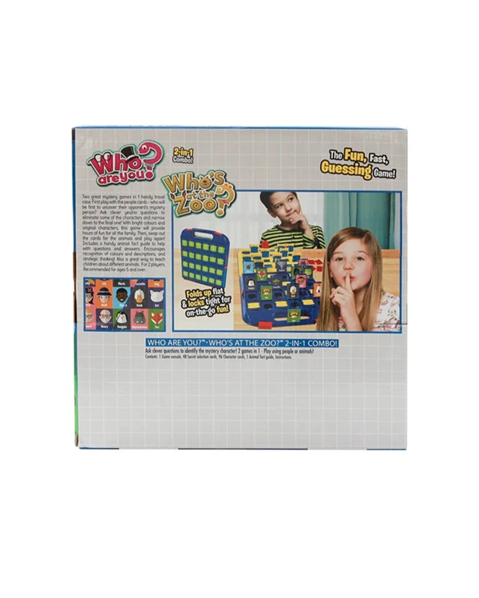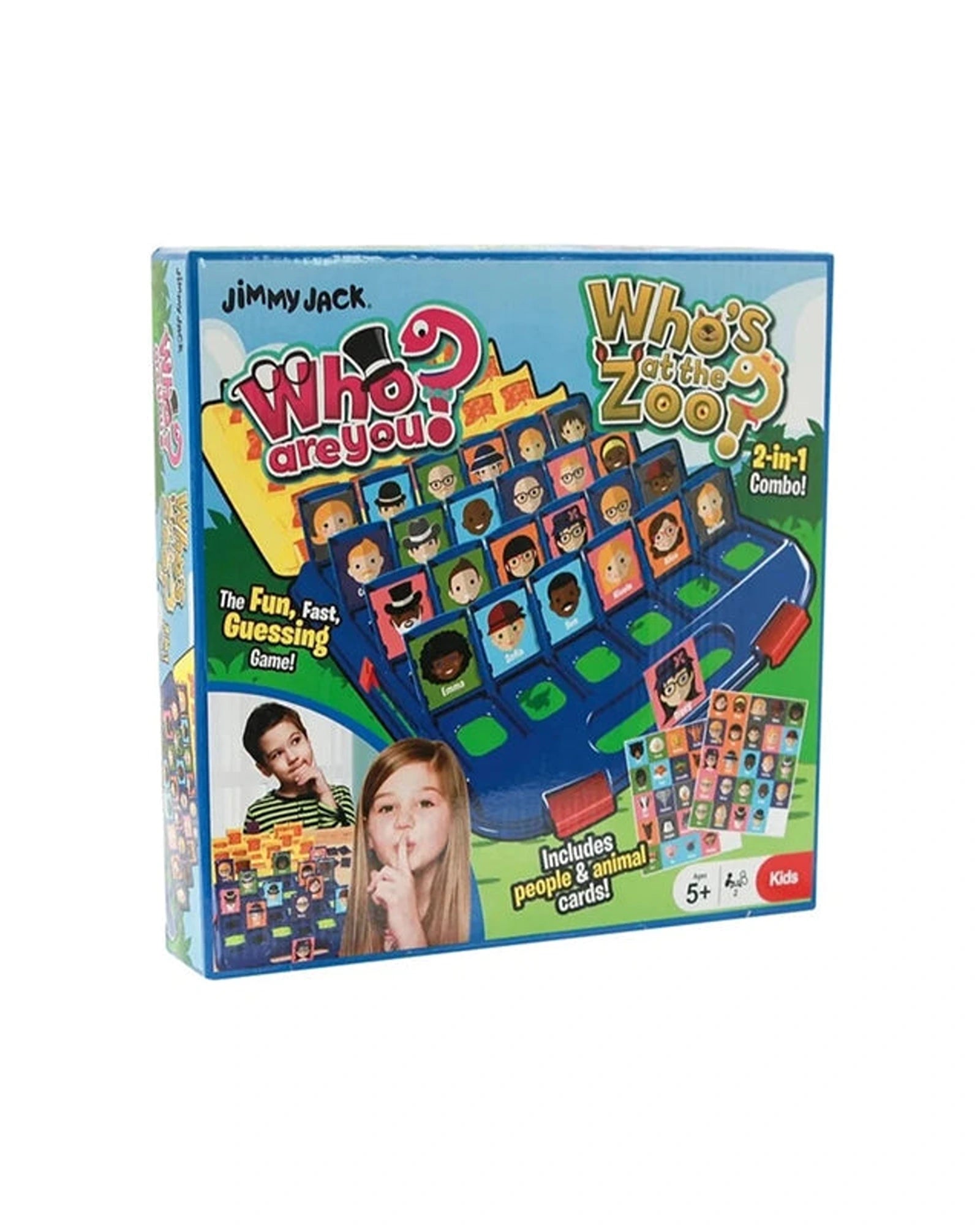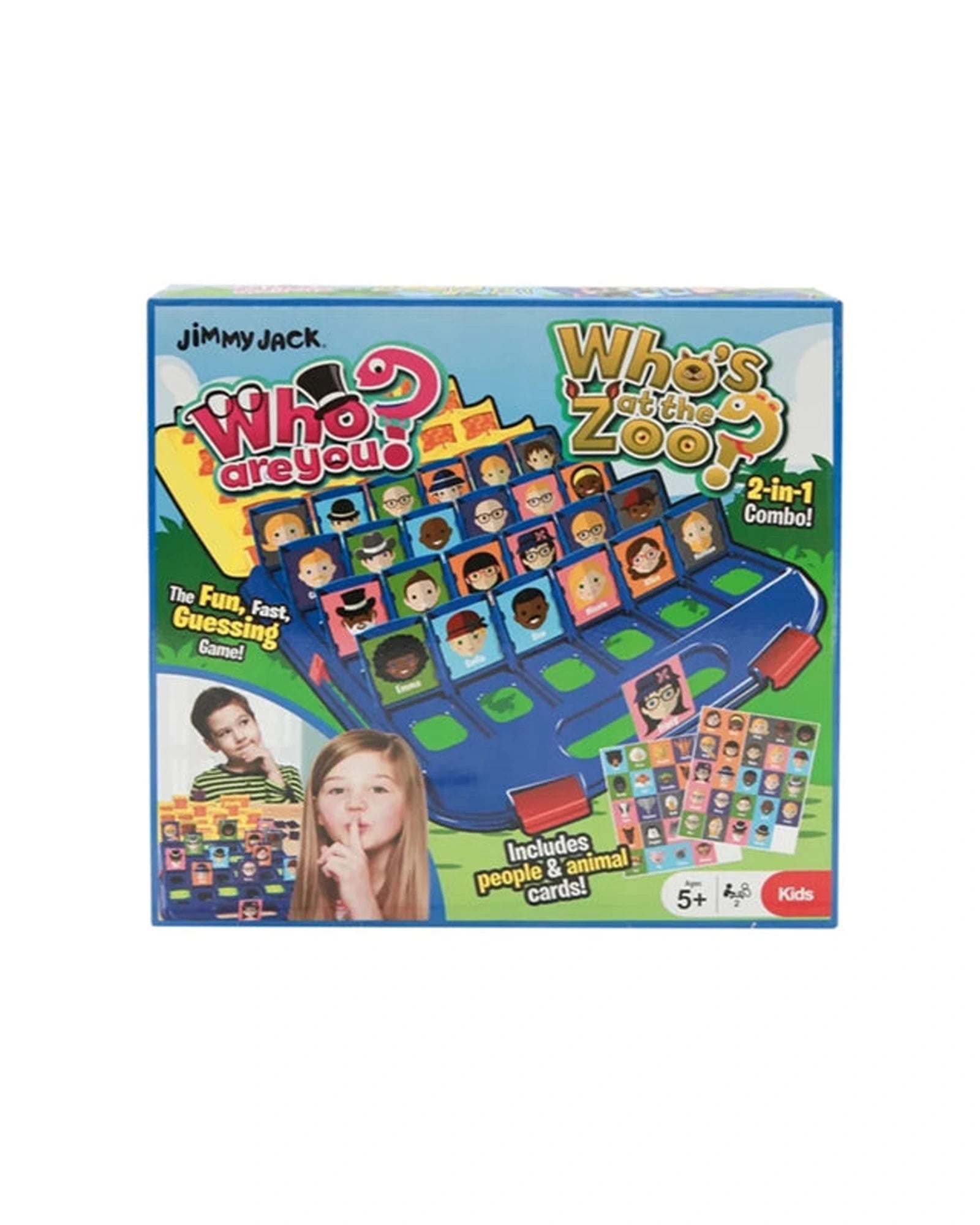 Jimmy Jack's Who Are You? and Who is at the Zoo? is 1 handy travel case with 2 great mystery games. First play with the people cards - who will be first to uncover their opponent's mystery person? Ask clever yes/no questions to eliminate some of the characters and narrow down to the final one. With bright colours and original characters, this game will provide hours of fun for all the family. Then, swap out the cards for the animals and play again. Includes a handy animal fact gide to help with questions and answers. Encourages recognition of colours, descriptions, and strategic thinking. Also a great way to teach children about different animals.